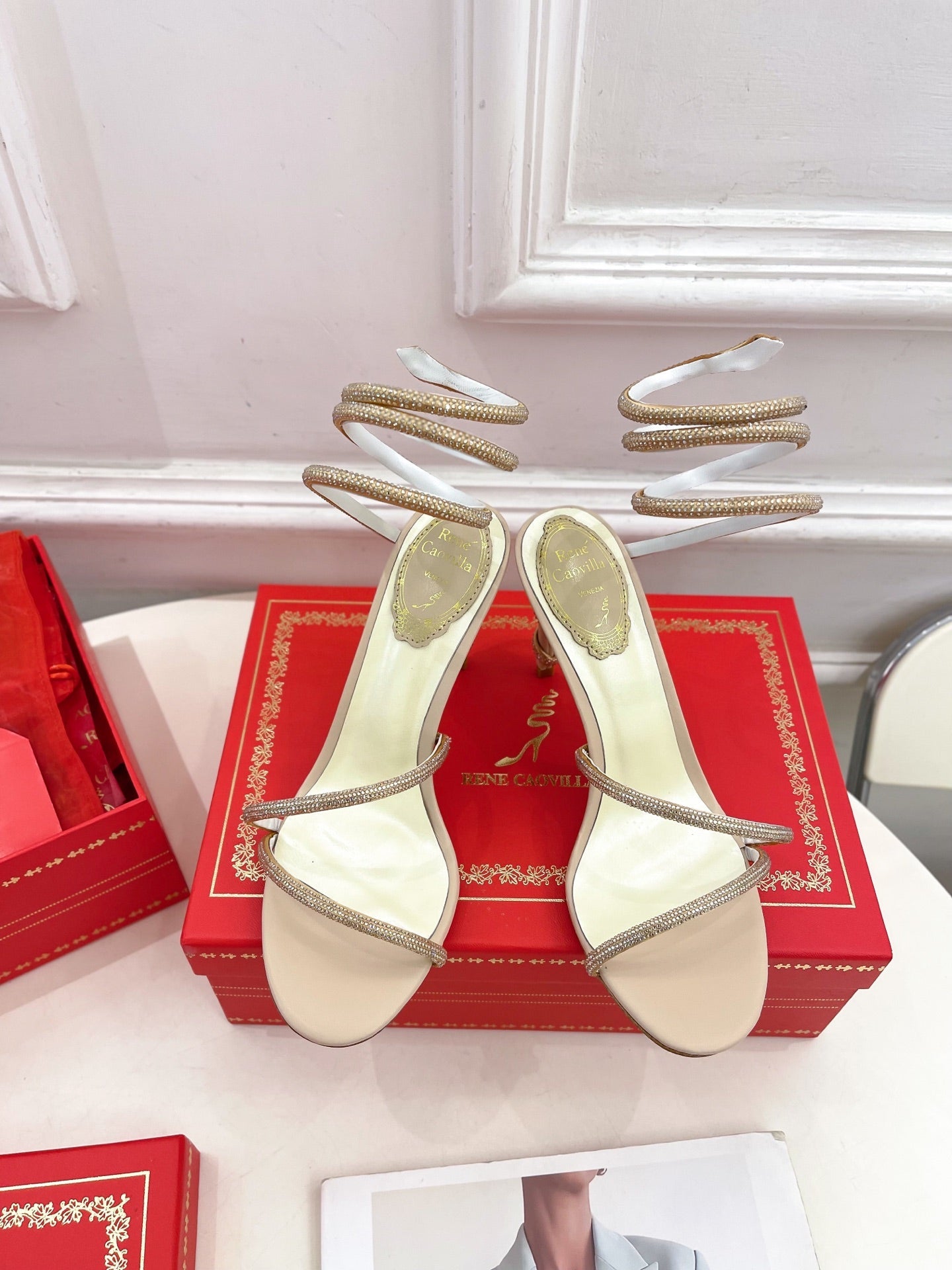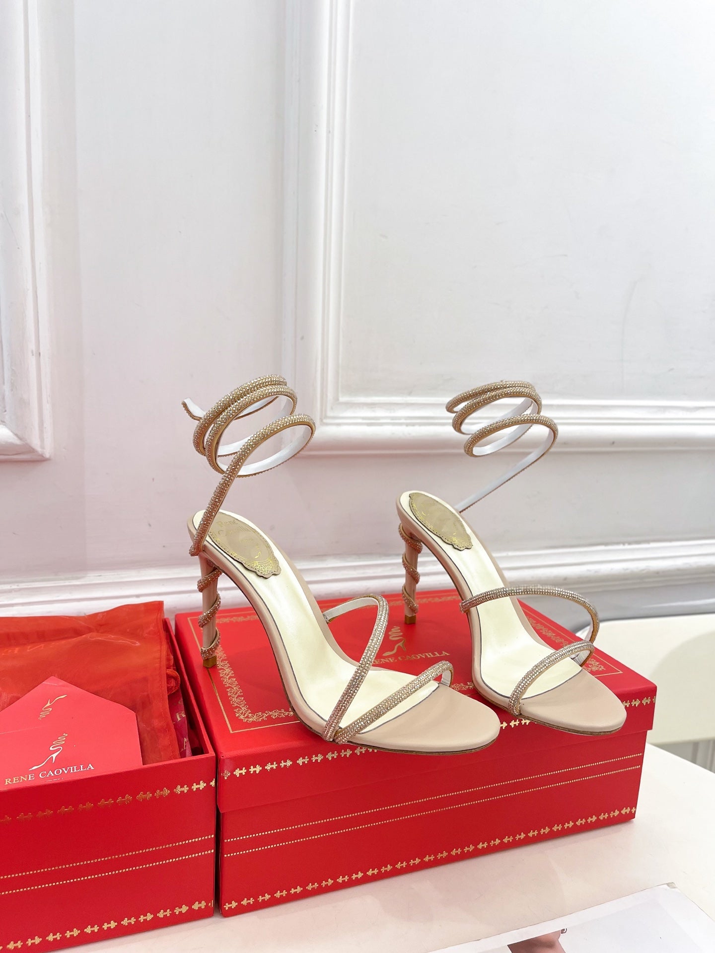 RC 25 Crystal Diamond Snake-Shaped High-Heeled Pink Nude Silk Rhinestones 253545