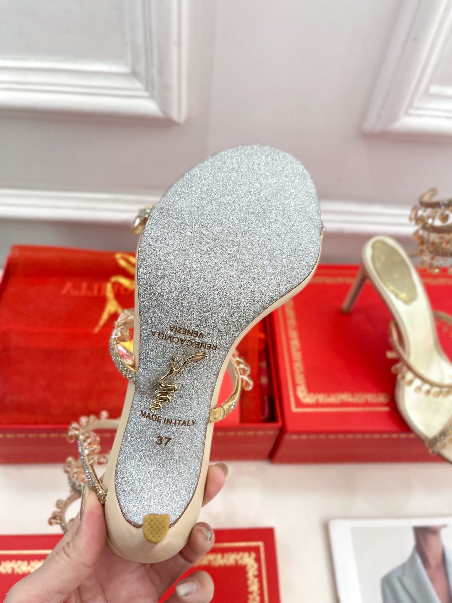 RC 25 Crystal Tassel High-Heeled Sandals Pink Nude Silk Crystal Diamond 251008