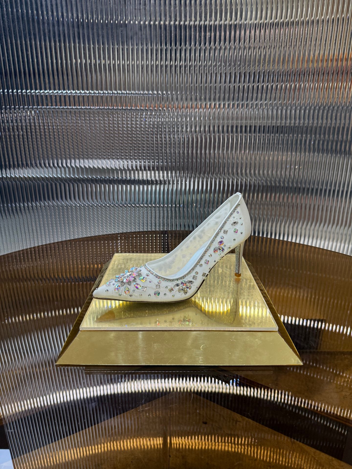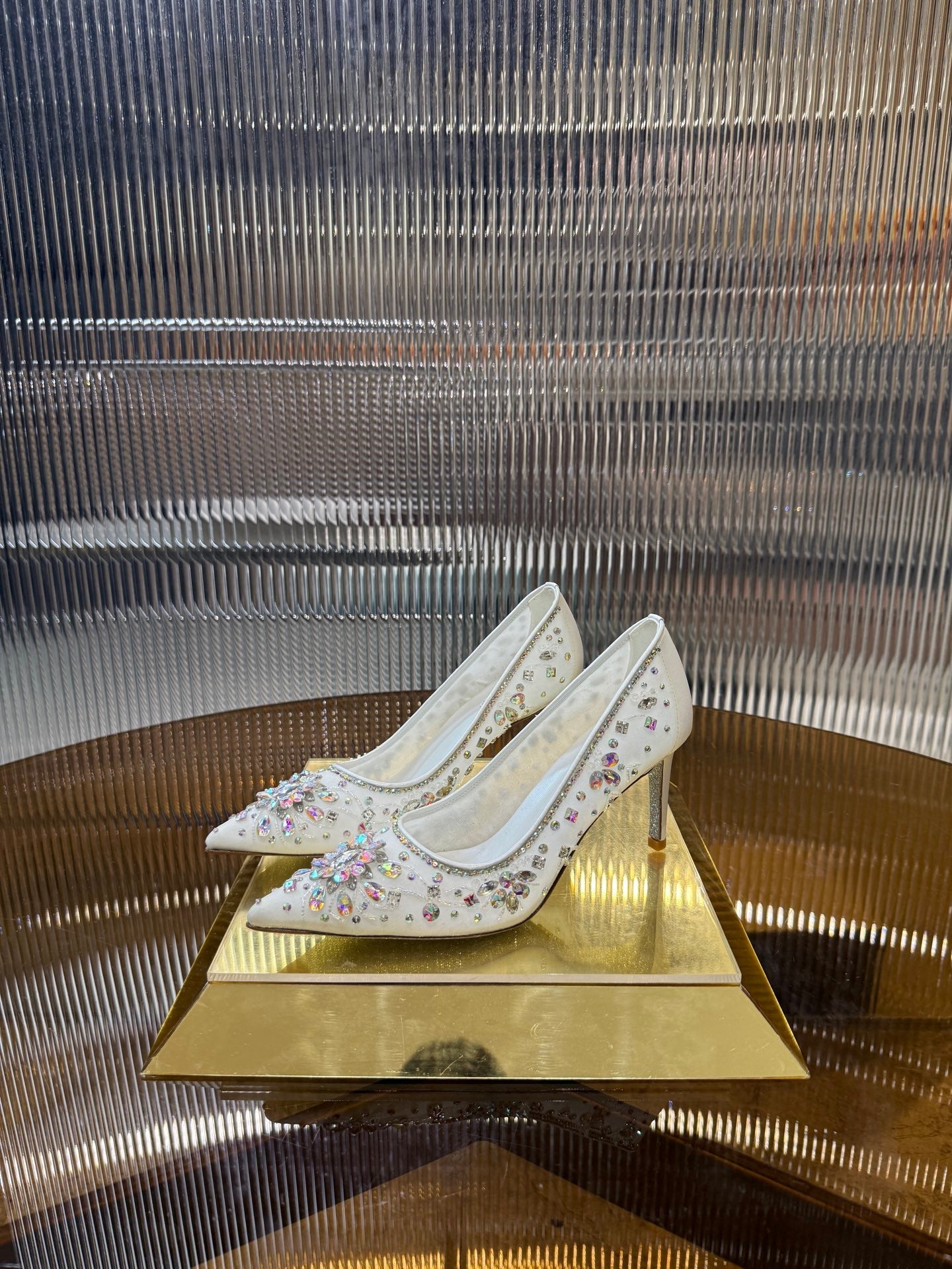 RC 25C Crystal Pearl Gem Lace High Heels White Sheepskin 275753