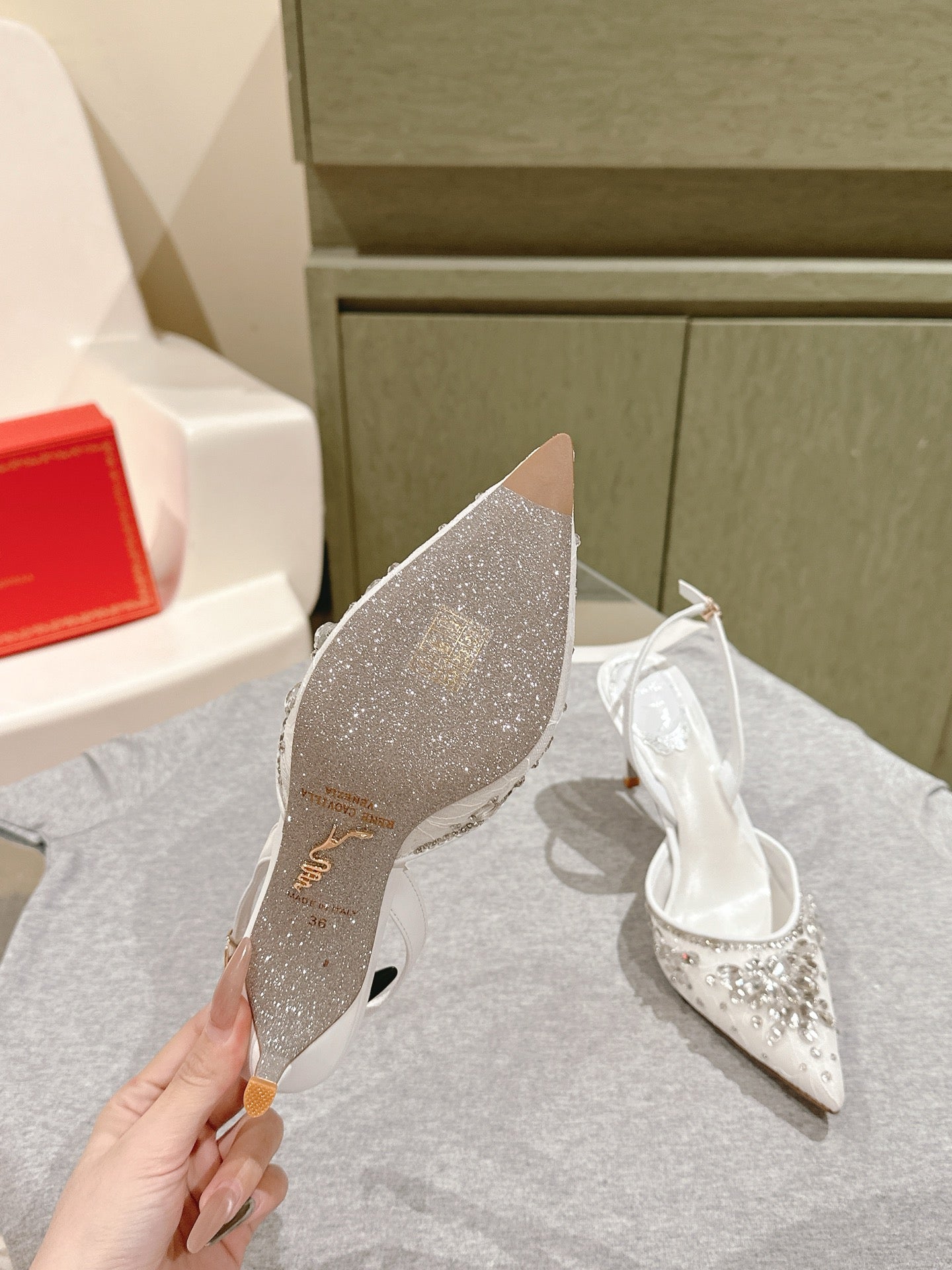 RC 25C Slingback Crystal High Heel 7.5cm White Silk Rhinestones 268080