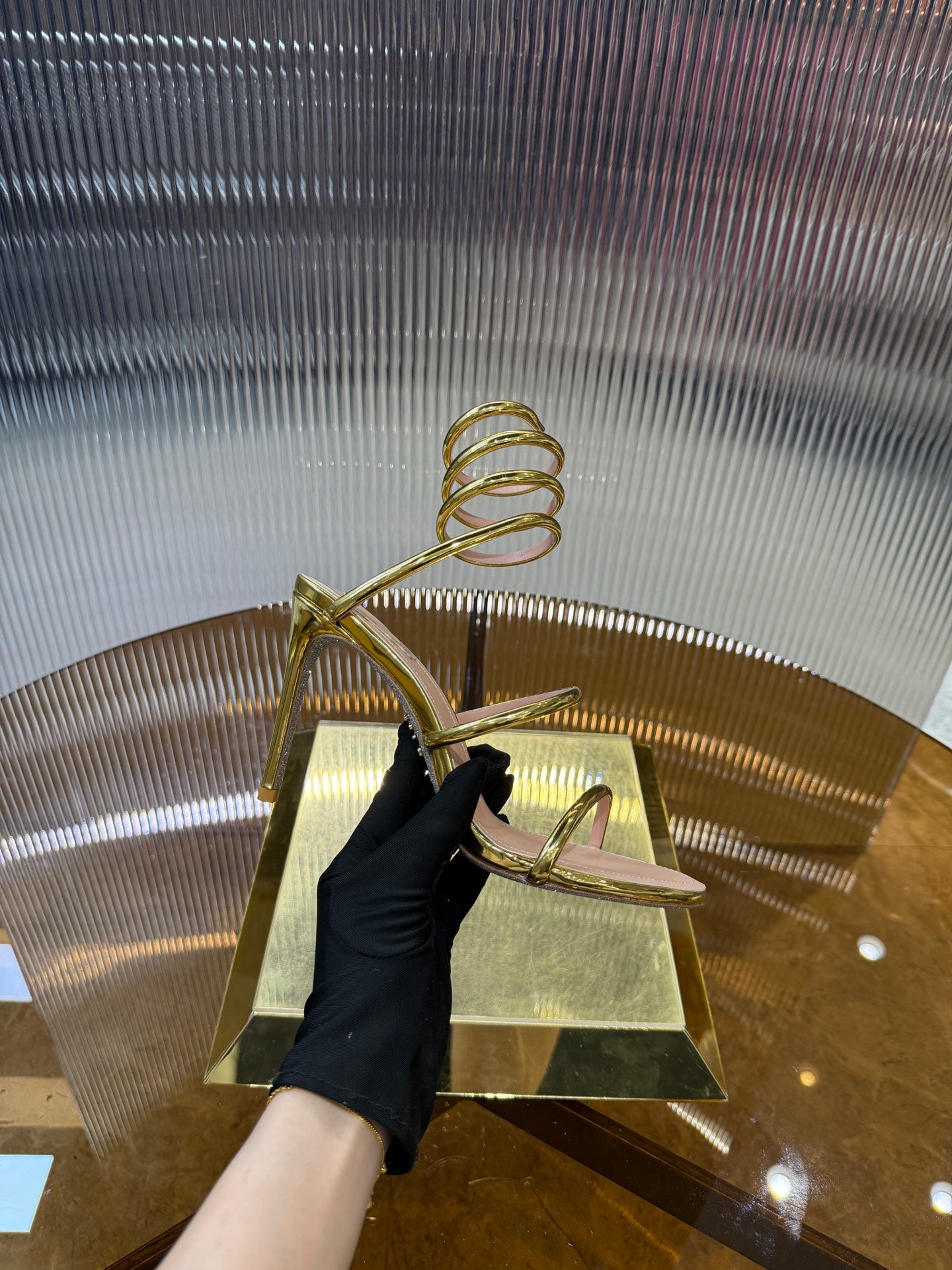 RC 25C Snake-Shaped Sandals 9.5cm Gold Sheepskin 310629