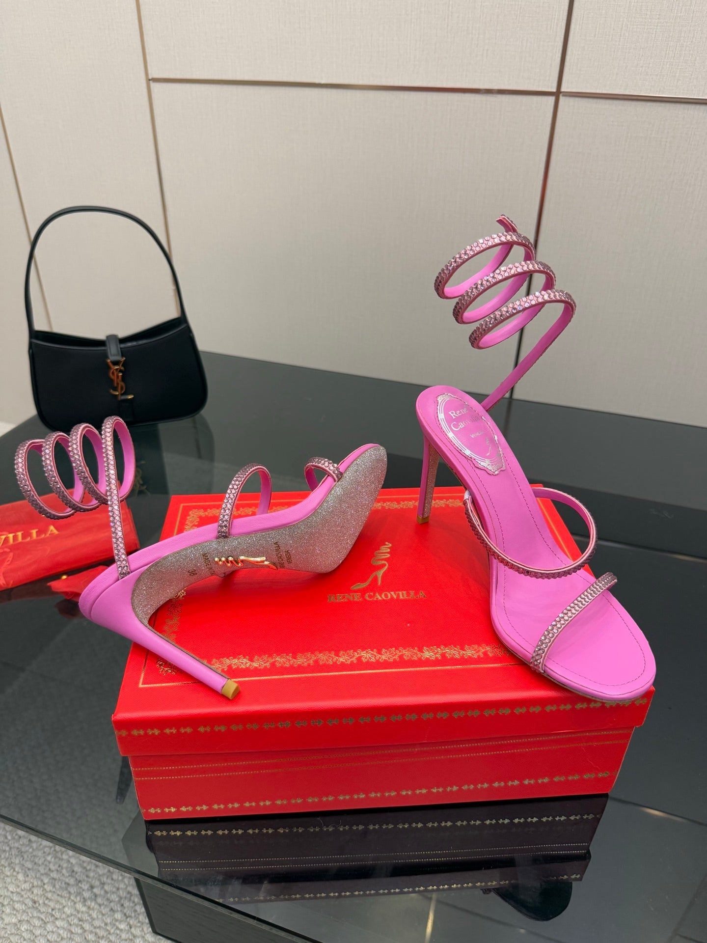 RC Sandals 9.5cm Dark Pink Silk Creole Crystal Diamond 302607