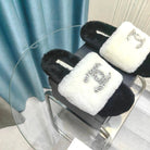 CC Slippers White Mix Black With Logo Fleece
