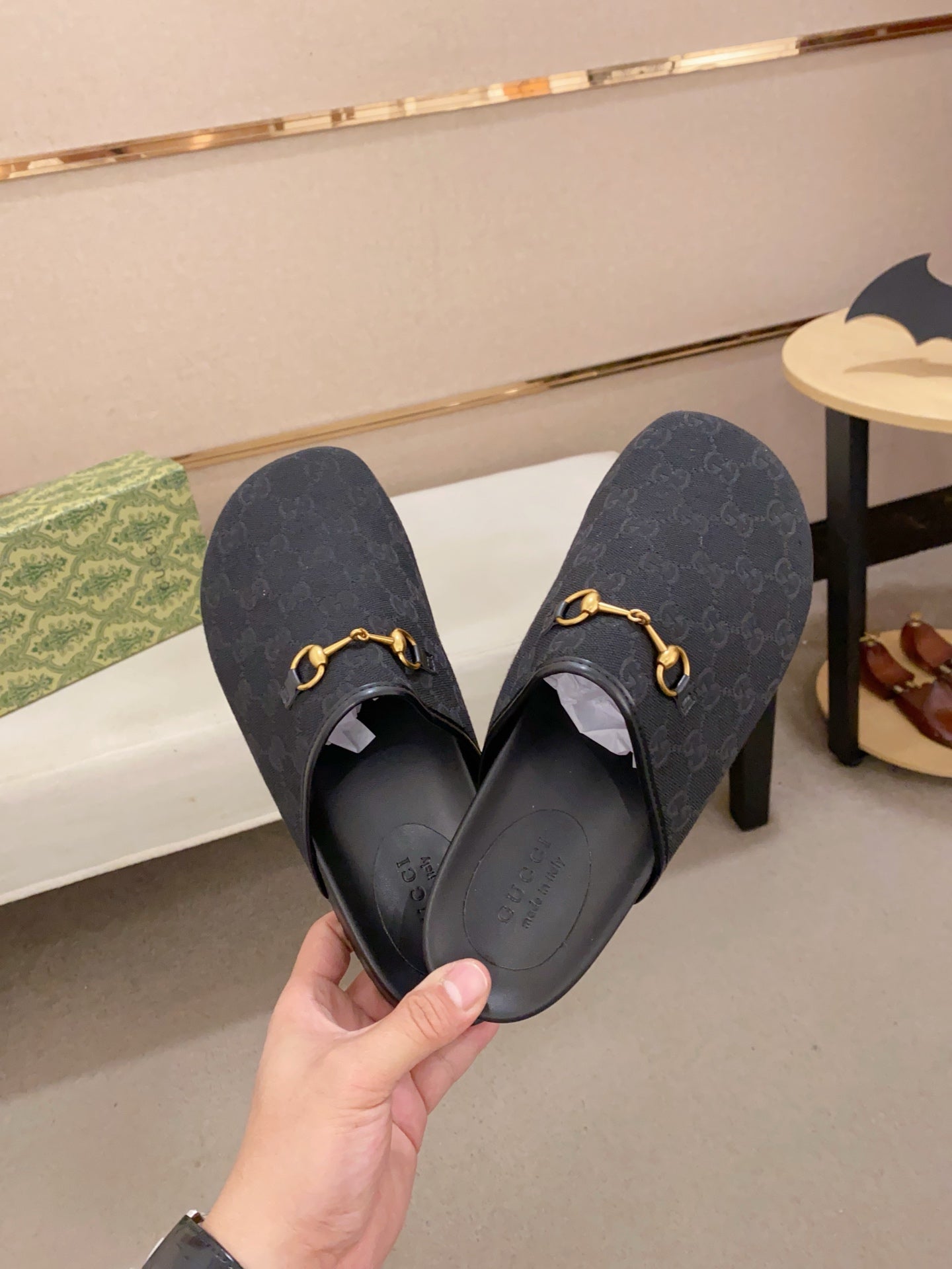 GG Men's Mule Black Printed Fabric 560358