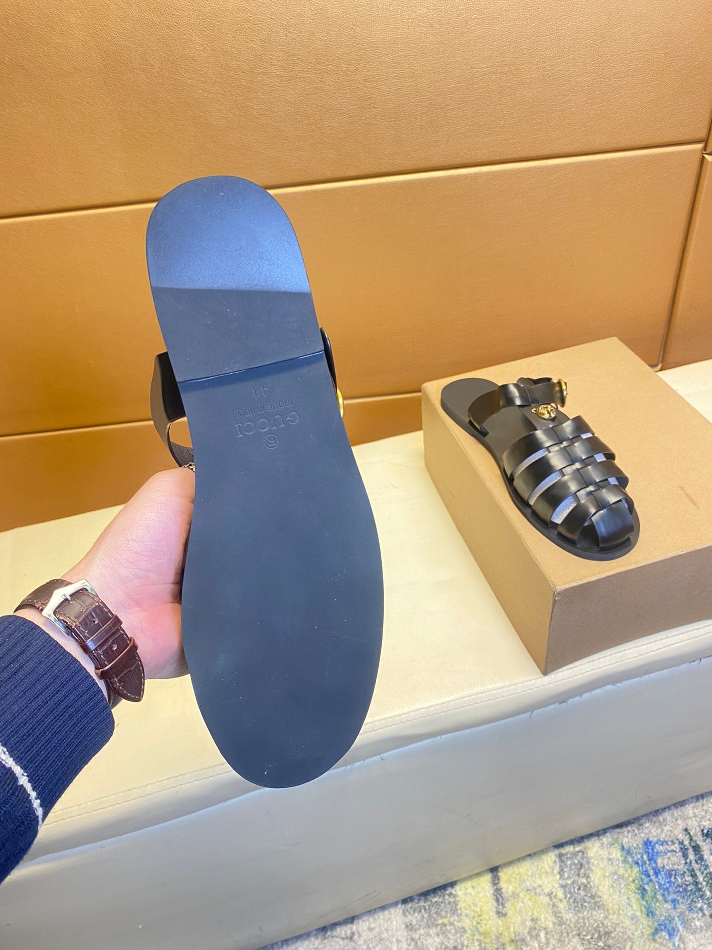 GG Men's Sandals Black Cowhide