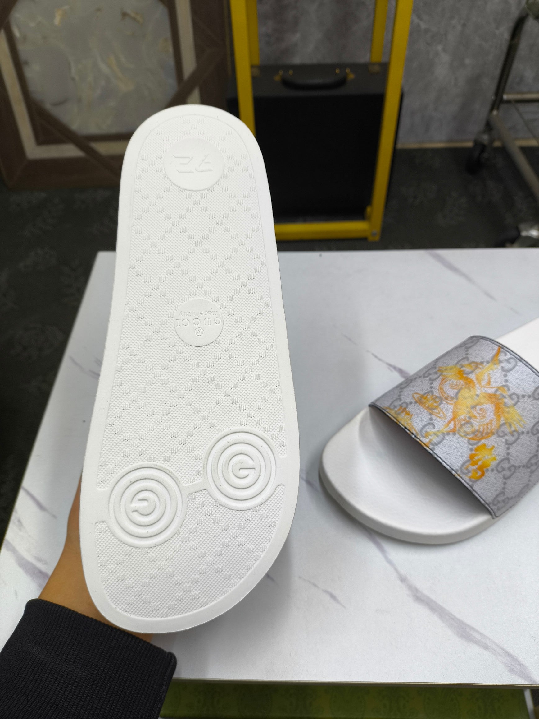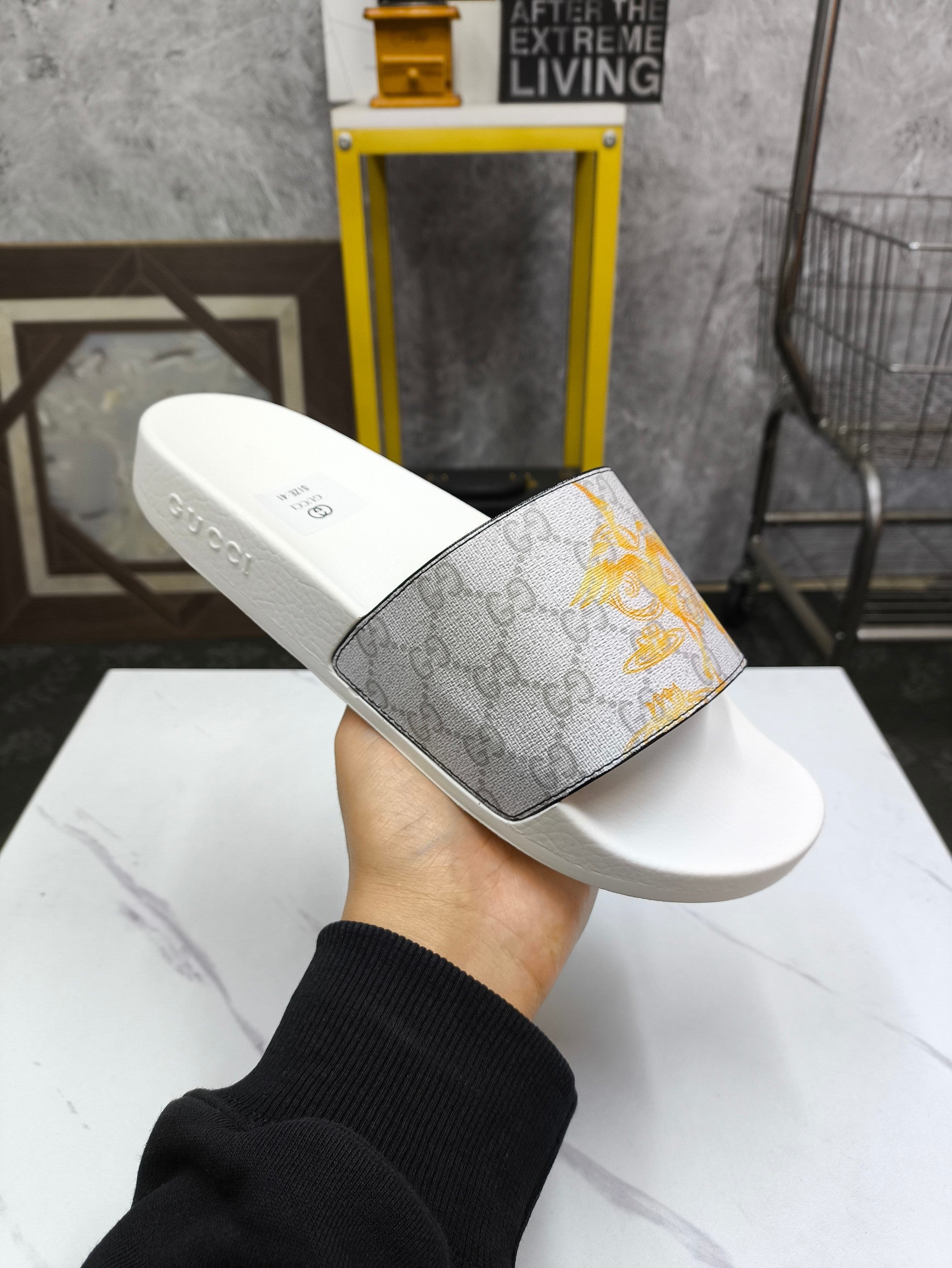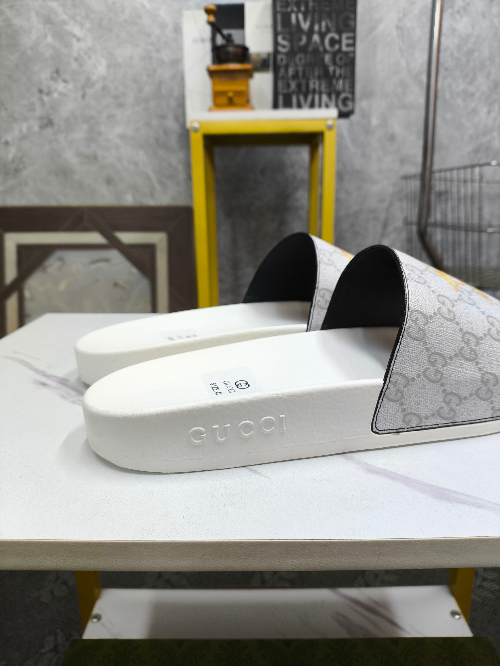 GG Men's Slide White Grey Sheepskin 535388