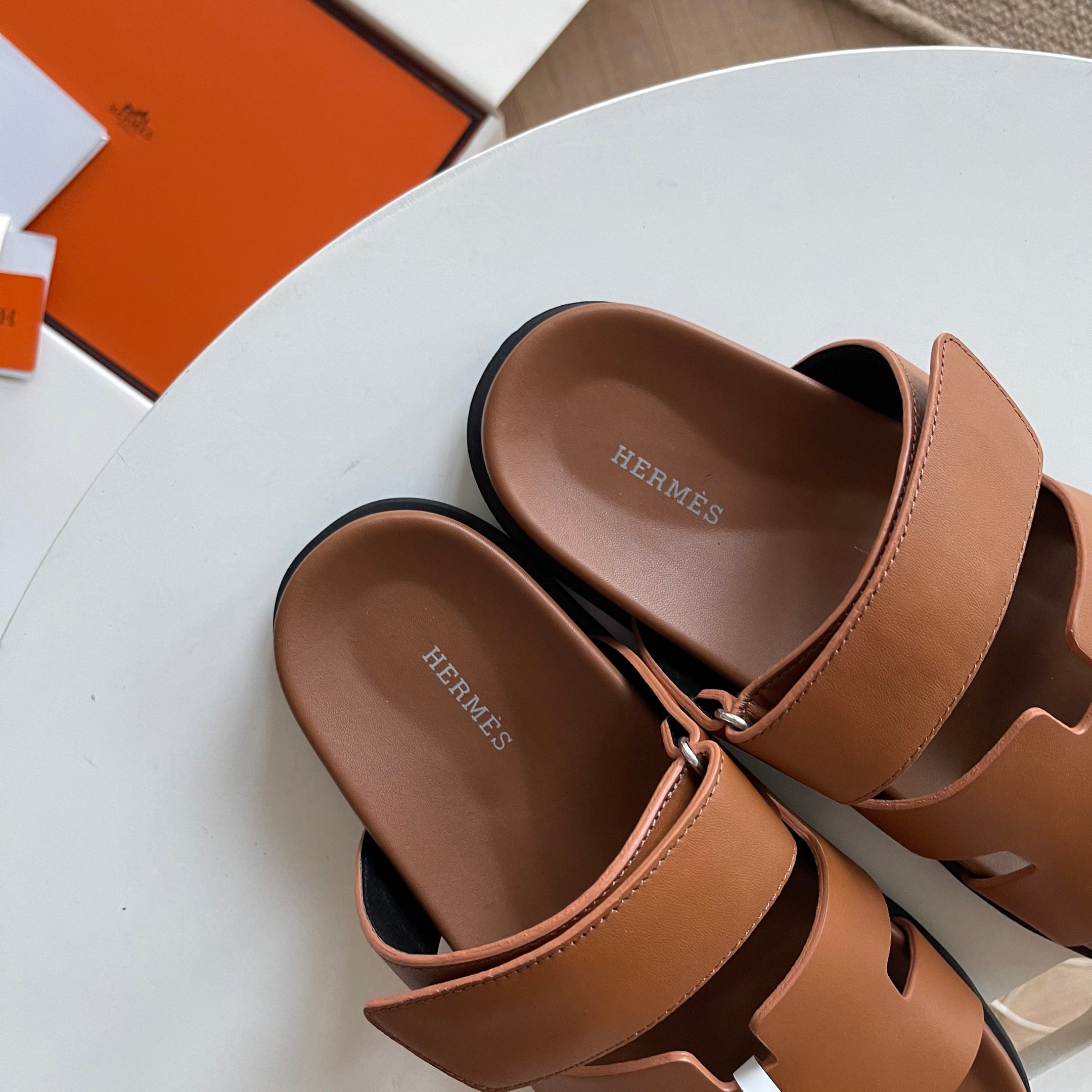 HM Men's Chypre Slide Brown Calfskin 538602