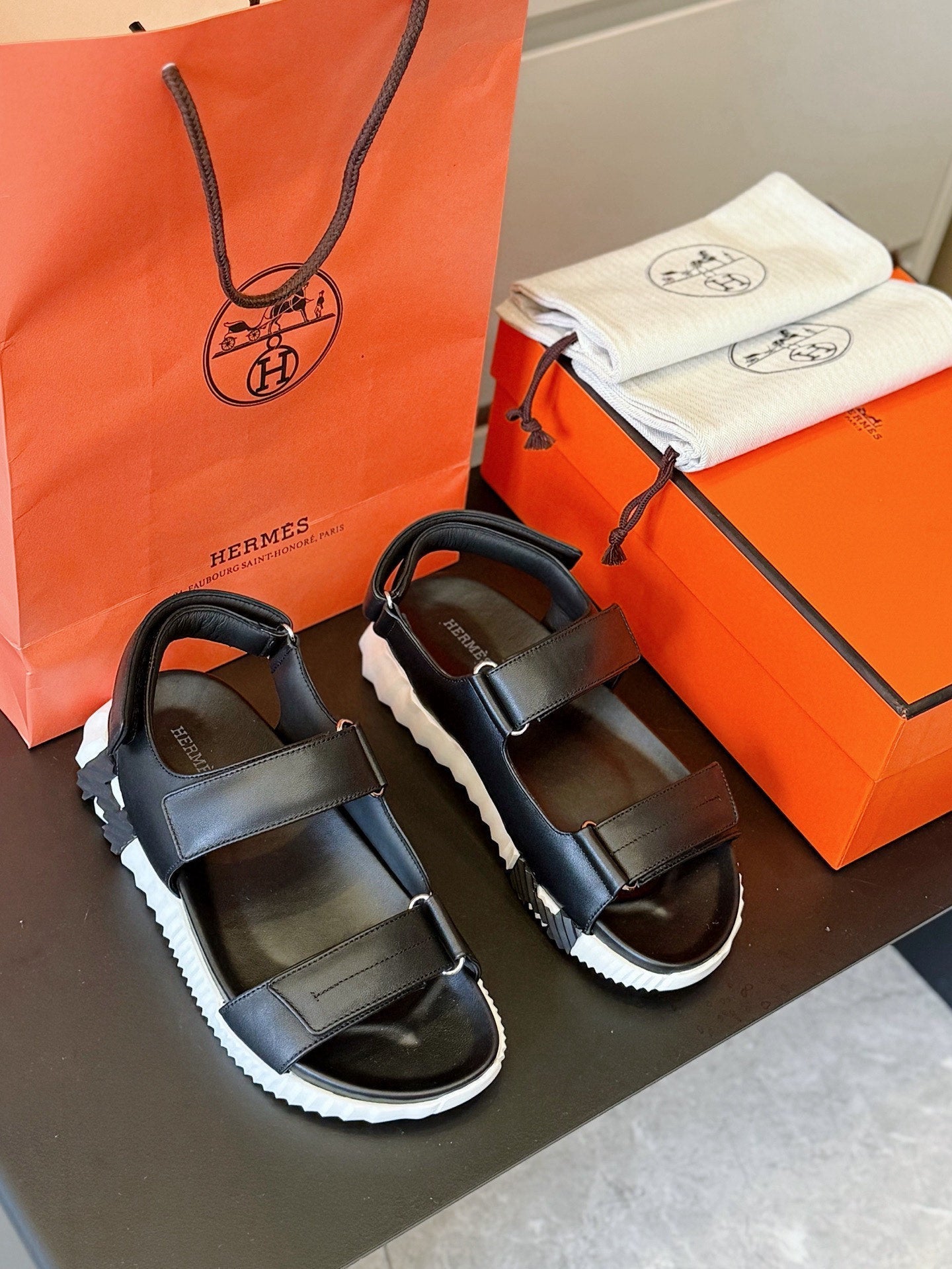 HM Men's Junior Sandal Black White Calfskin 643241