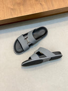 HM Men's Slide Grey Cowhide Leather 589000