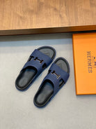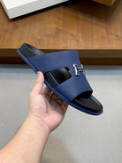 HM Men's Slide Navy Blue Cowhide Leather 588997