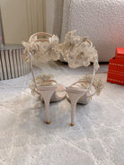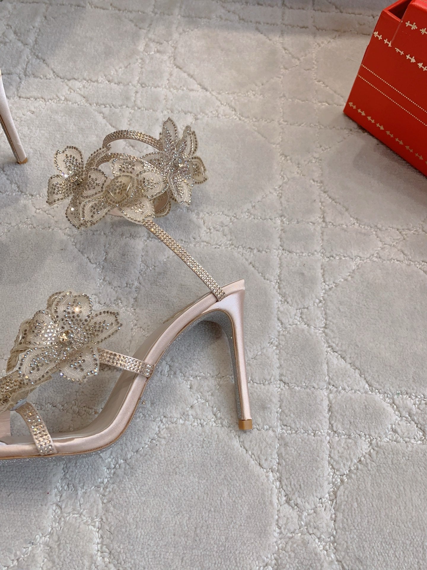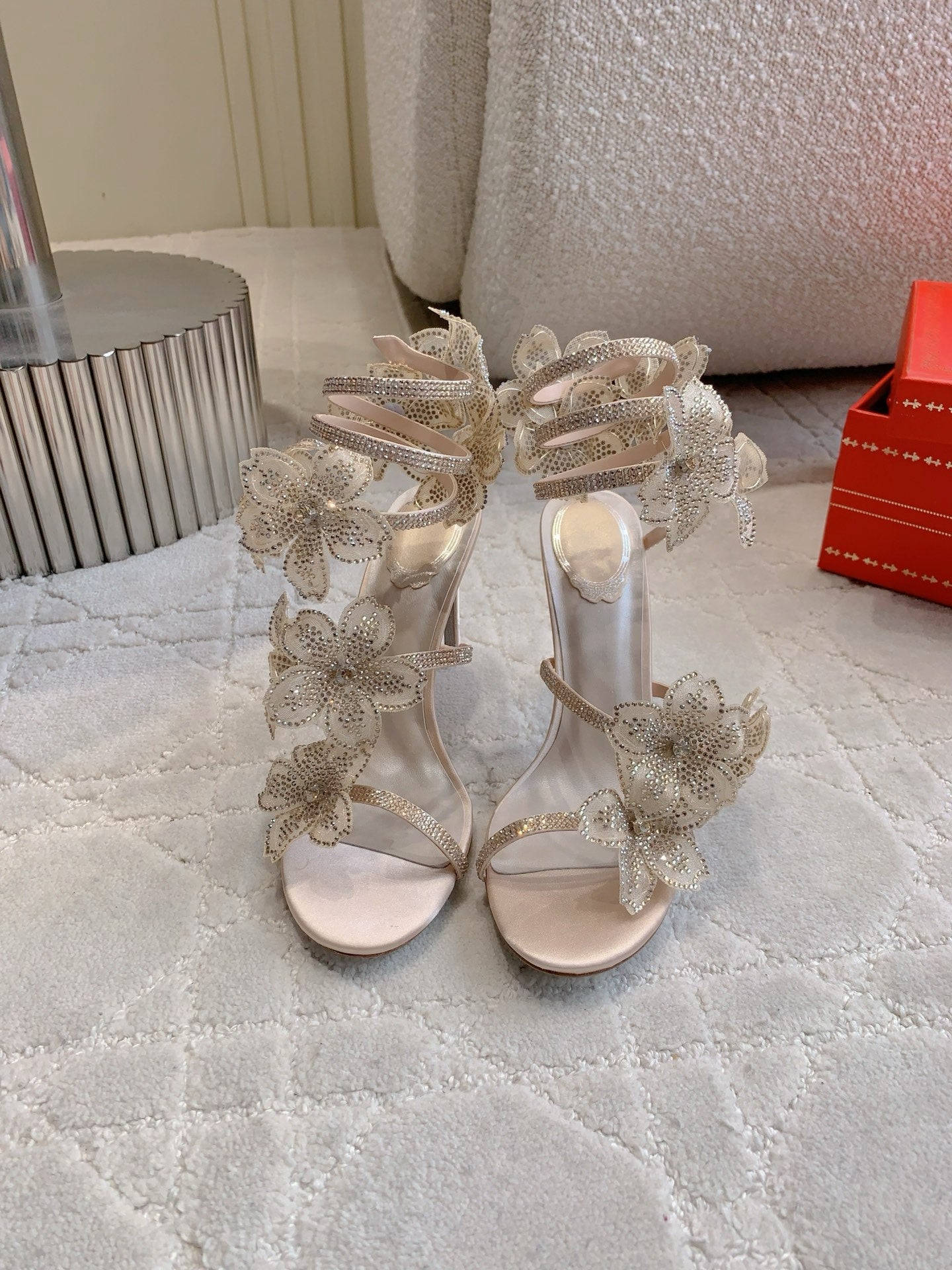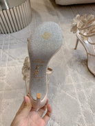 RC Flower Sandals Beige Sheepskin Rhinestones 328467