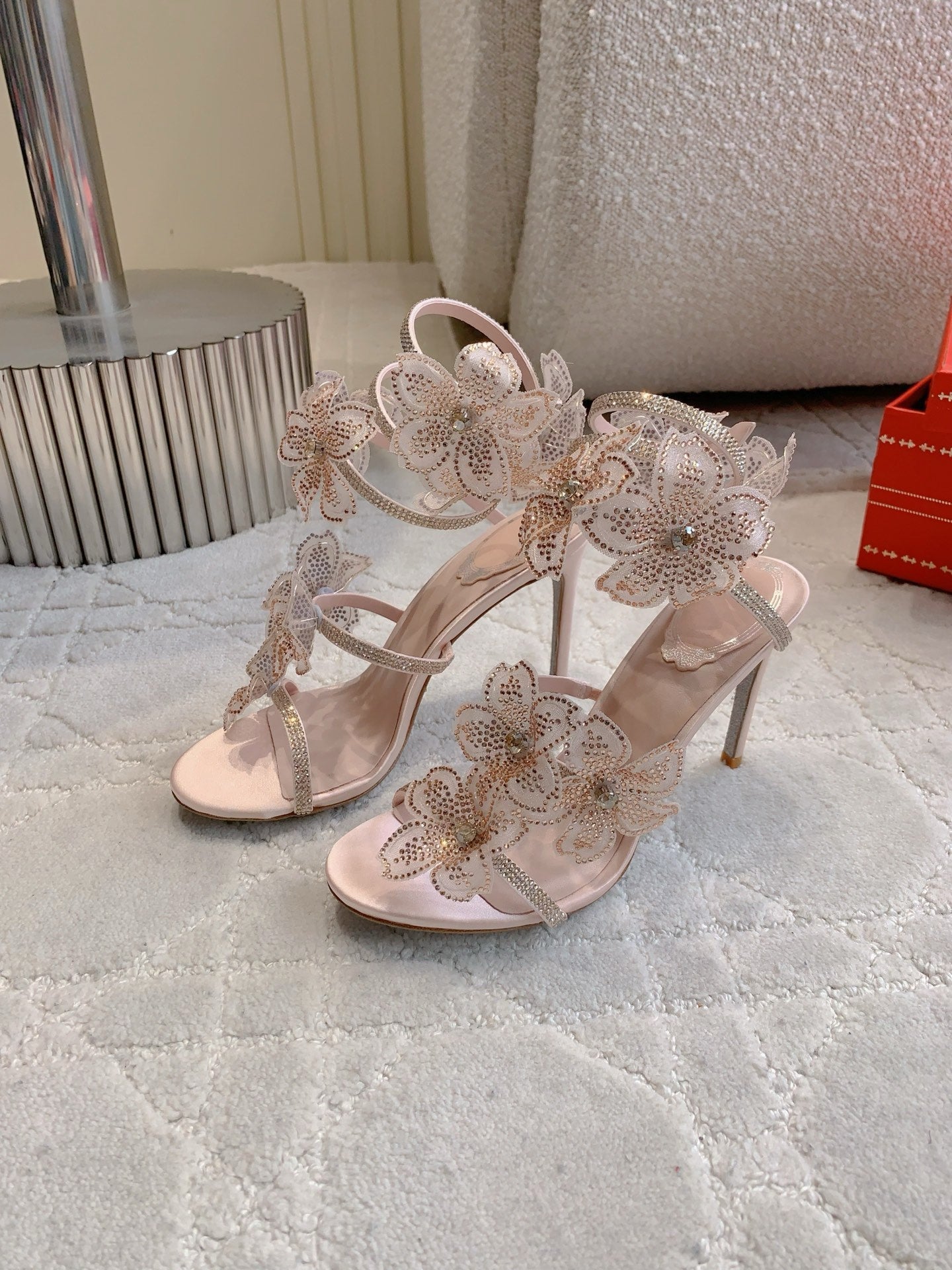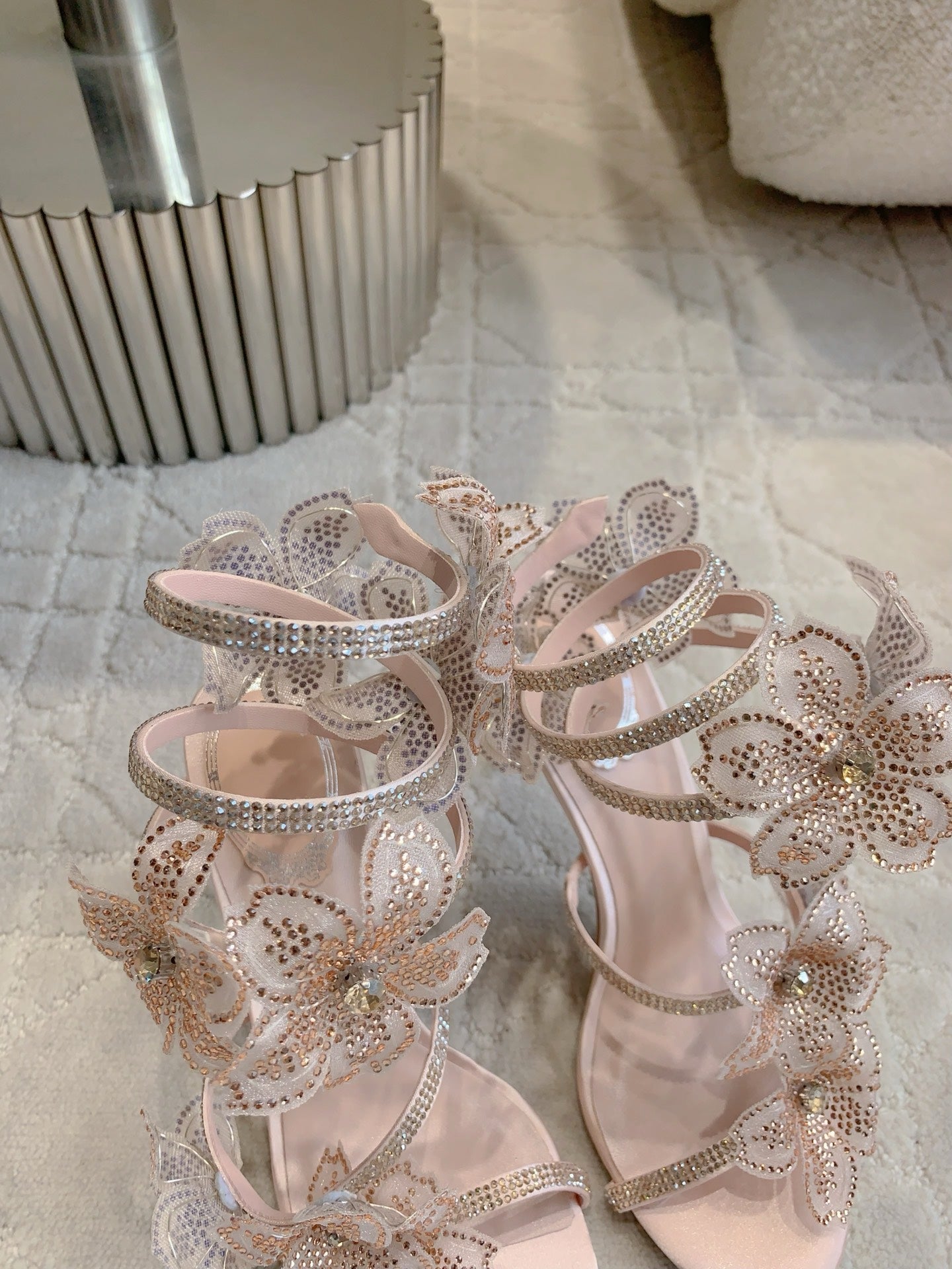 RC Flower Sandals Pink Nude Sheepskin Rhinestones 328466