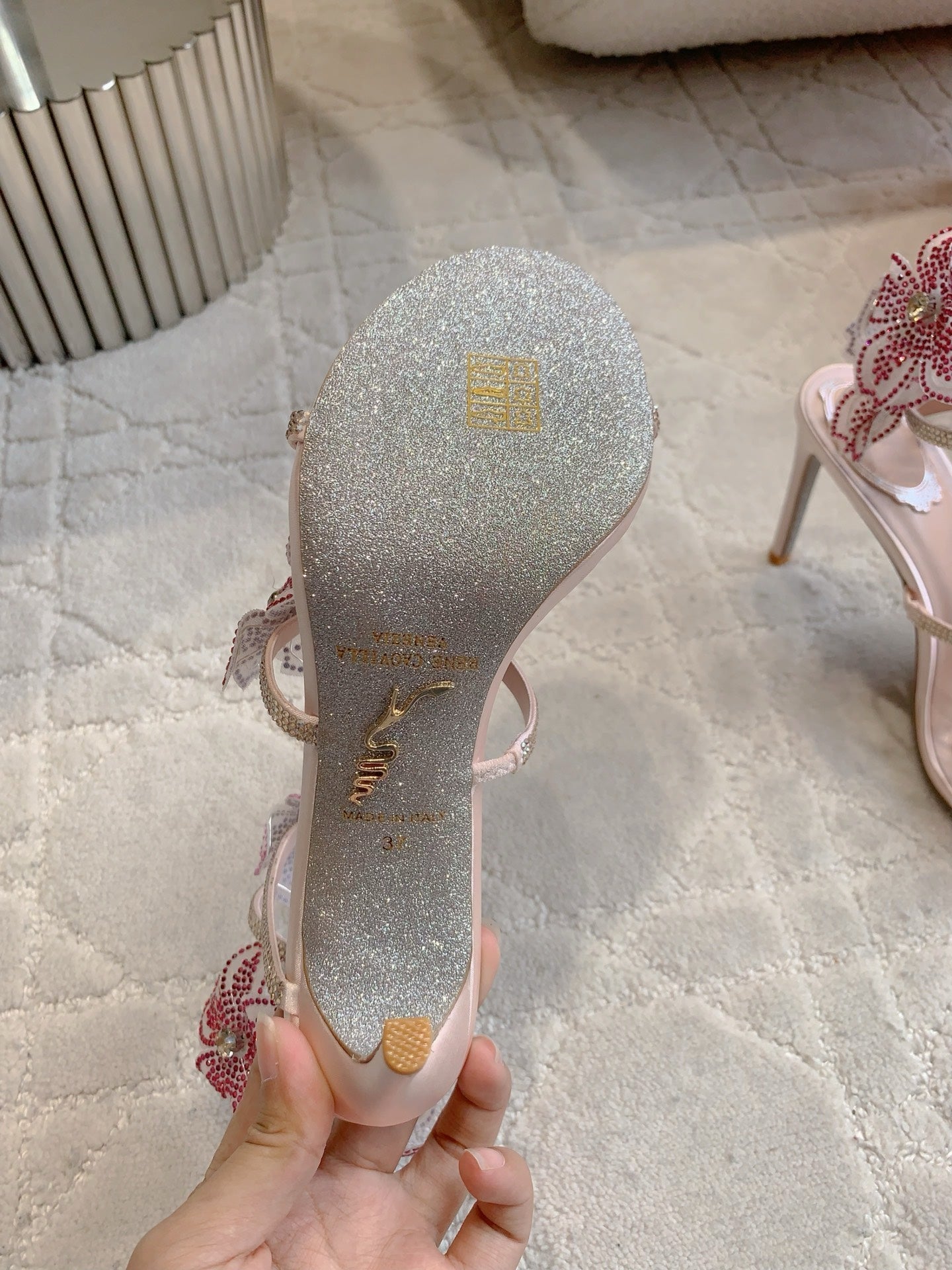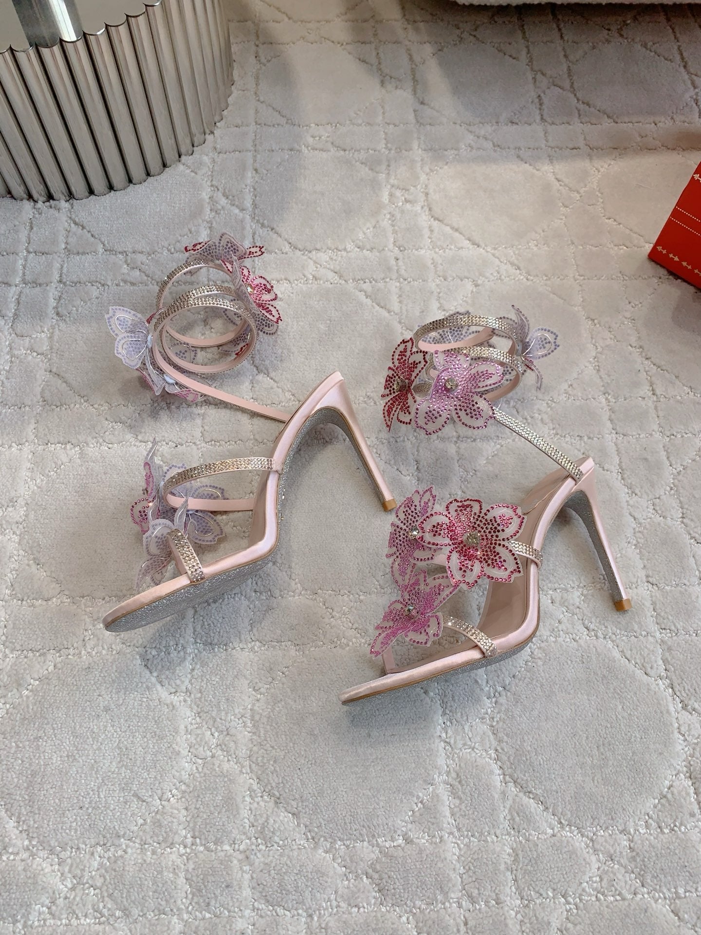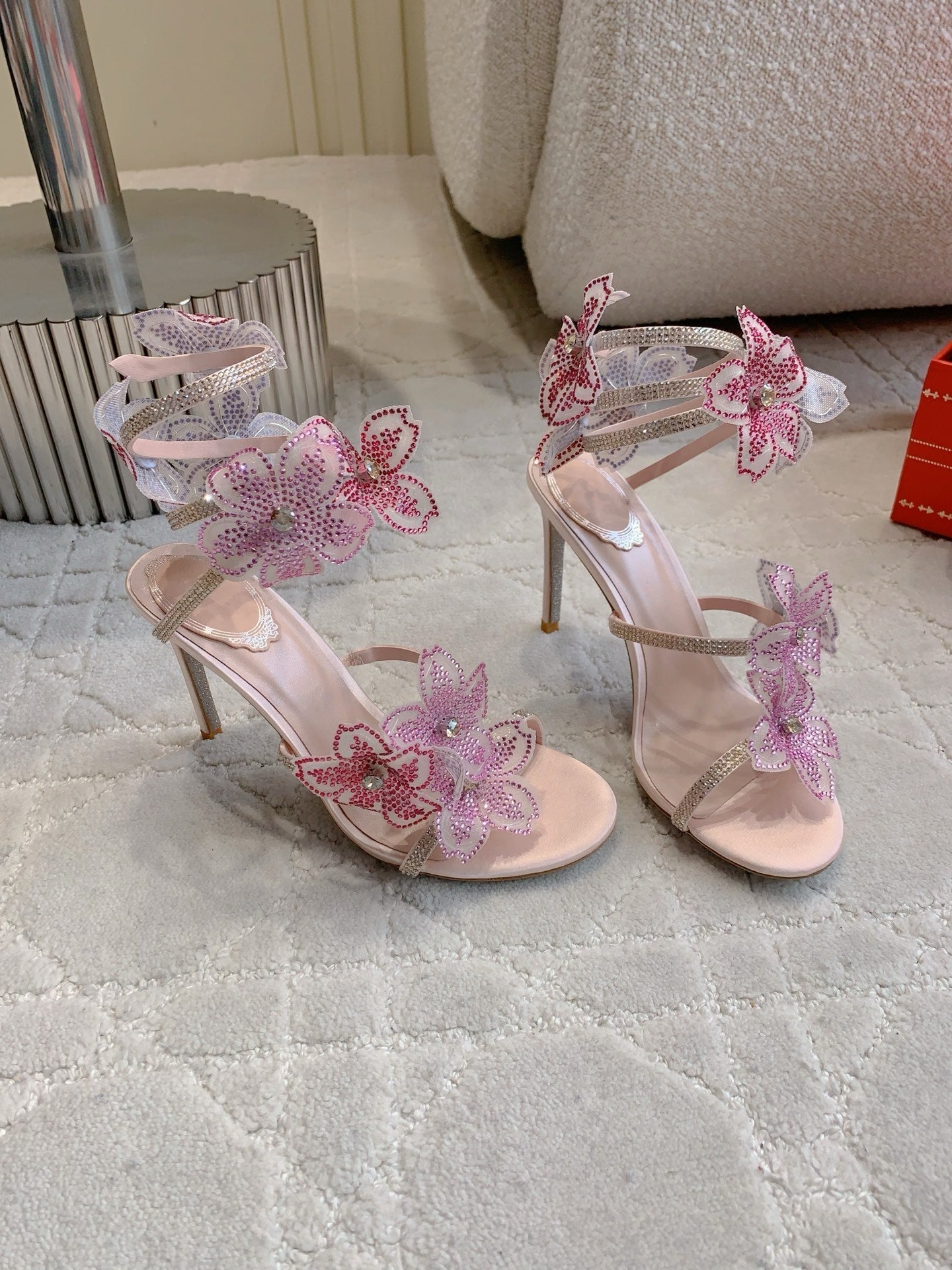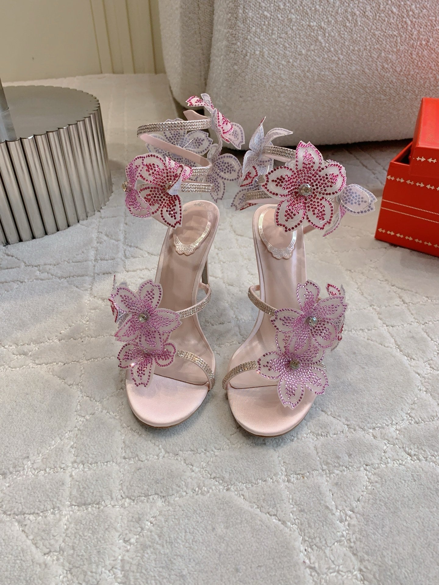 RC Flower Sandals Pink Sheepskin Rhinestones 328465
