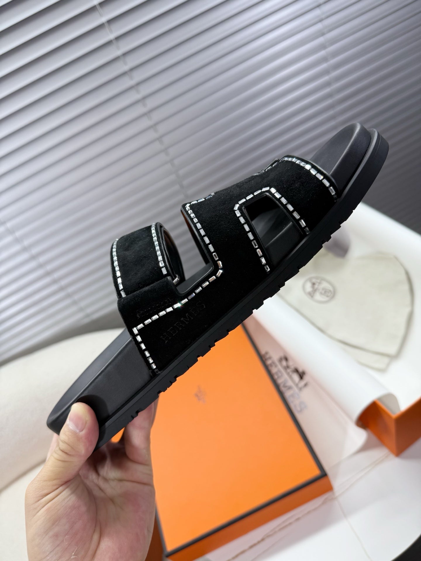 HM 25C Oasis Sandal Black Leather With Rhinestone 202835