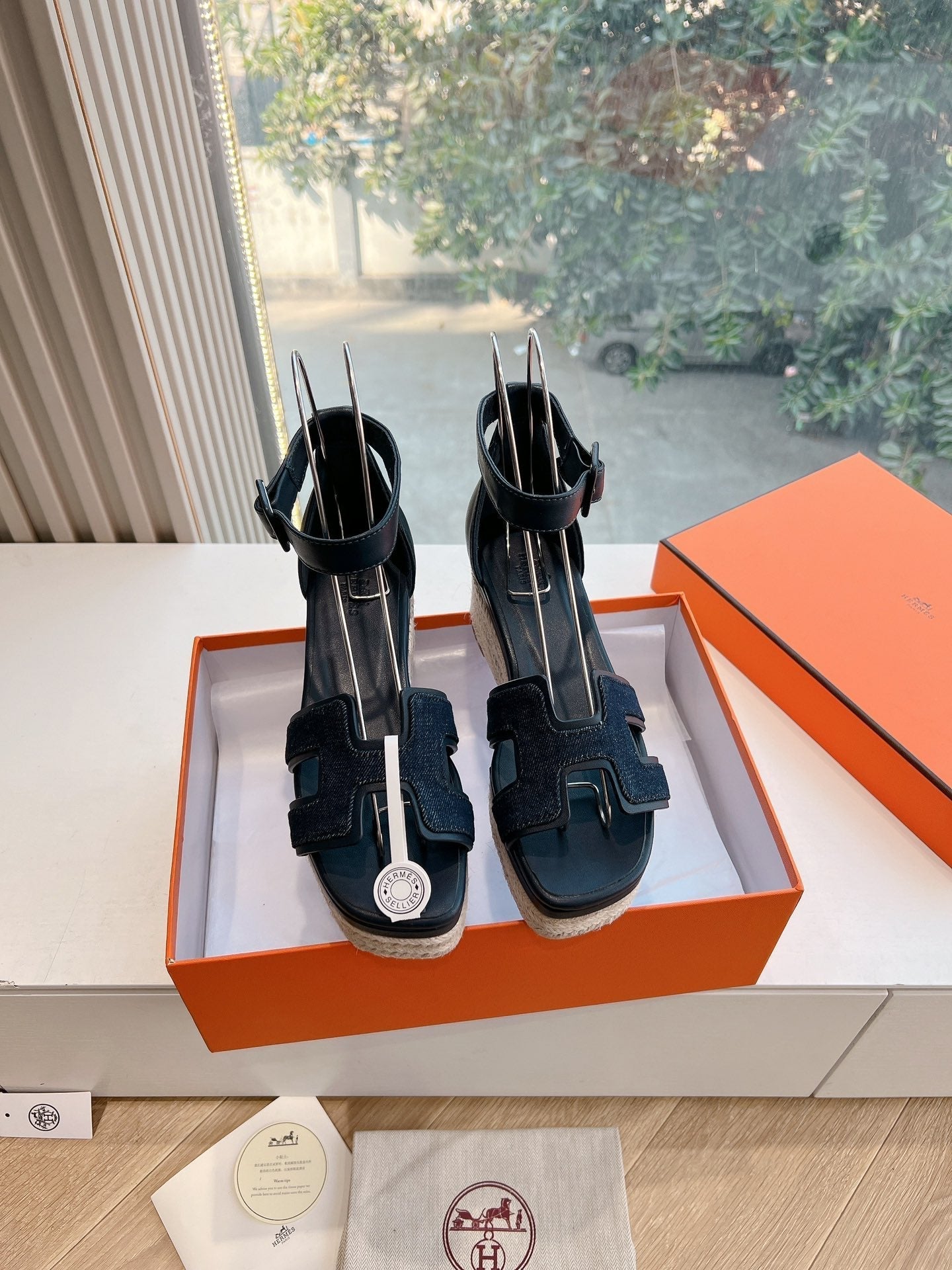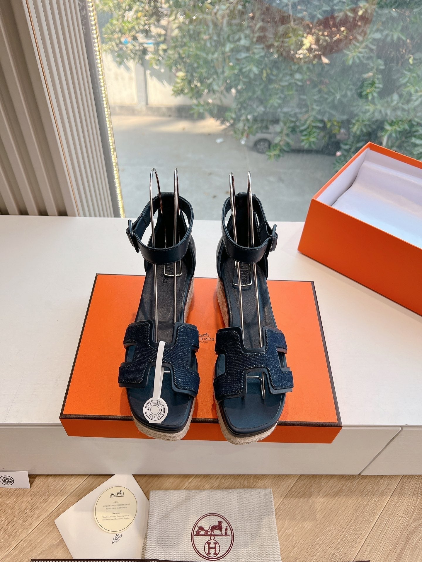 HM 25C Elda espadrille Bleu Brut Denim and Goatskin 202833