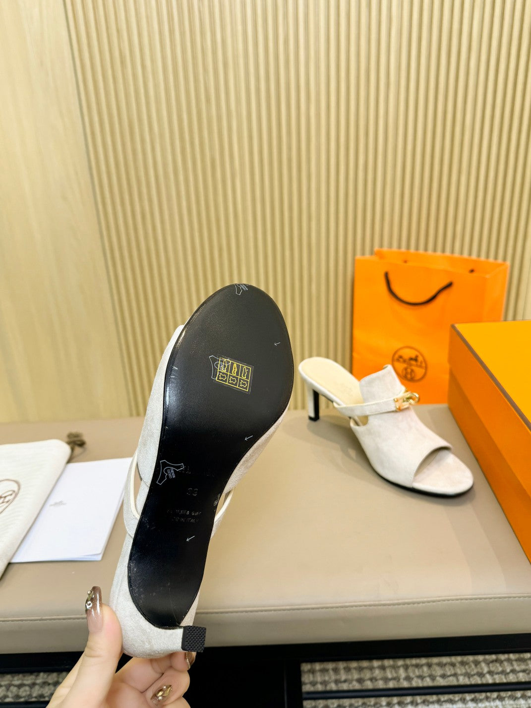 ROCKSTUD WISPY CREPE PINK CALFSKIN MULE 60MM