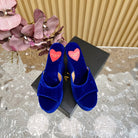 ALAIA PLATFORM WEDGE IN COBALT BLUE VELVET WITH HEART EMBROIDERED