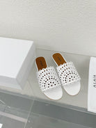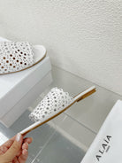 ALAIA VIENNE FLAT MULES IN WHITE LAMBSKIN
