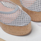 ALAIA WEDGE SANDAL IN LIGHT GREY MESH AND BEIGE RUBBER
