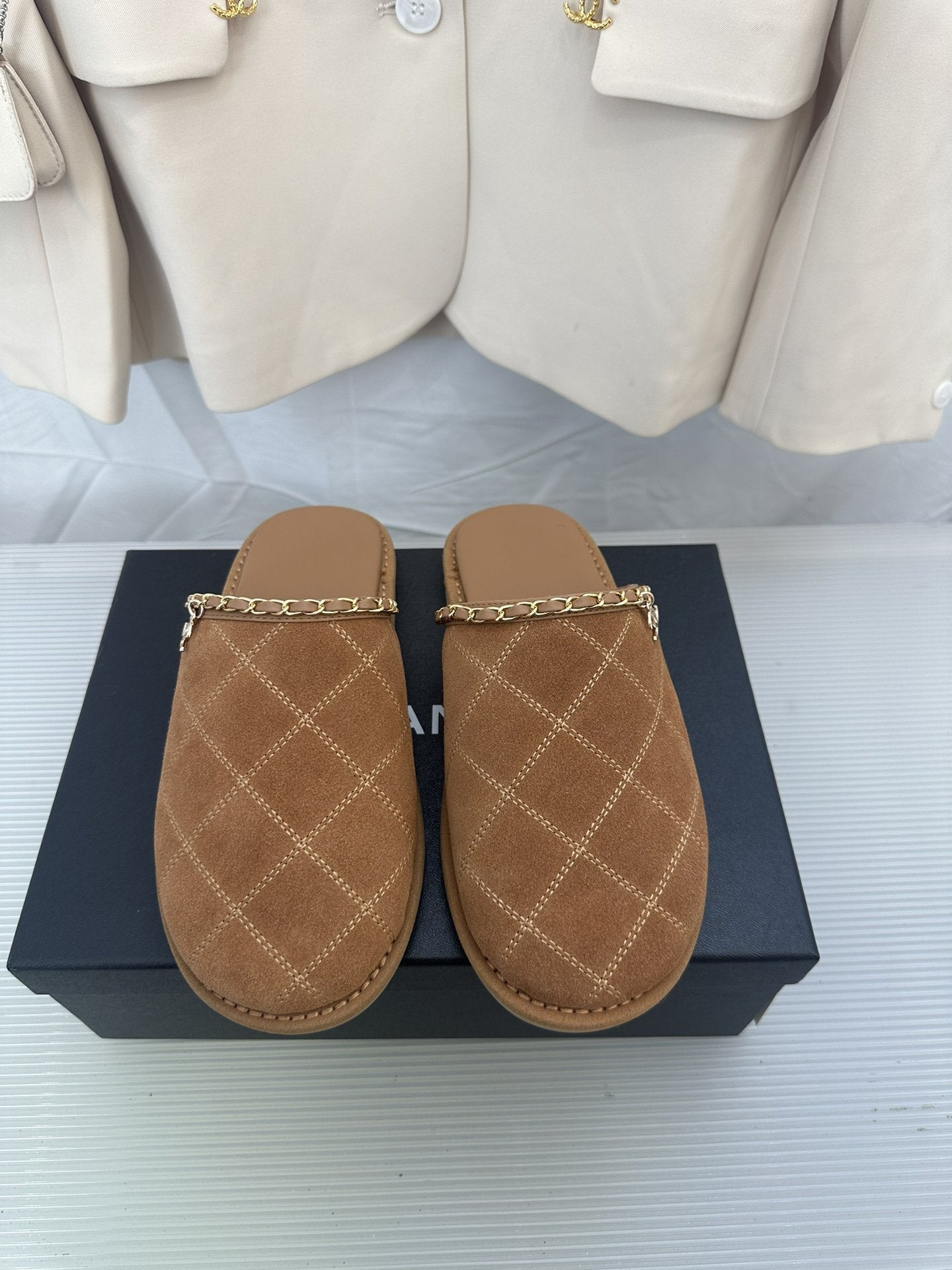CC Brown Suede Gold Chain Mules