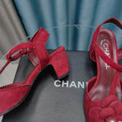 CC CAMELLIA SANDAL IN CHERRY RED SUEDE AND BLACK CALFSKIN WITH FLOWER