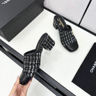 CC HIGH MULE IN BLACK MIX WHITE WOOL TWEED AND CALFSKIN