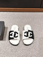 CC SLIPPERS IN WHITE MIX BLACK FLEECE