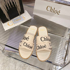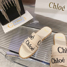 CHLOÉ WOODY SLIPPER IN BEIGE MIX BLACK CANVAS