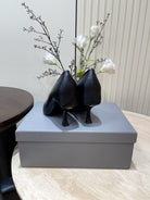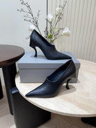 CURVED HEEL DEEP MOUTH PUMPS IN BLACK CALFSKIN