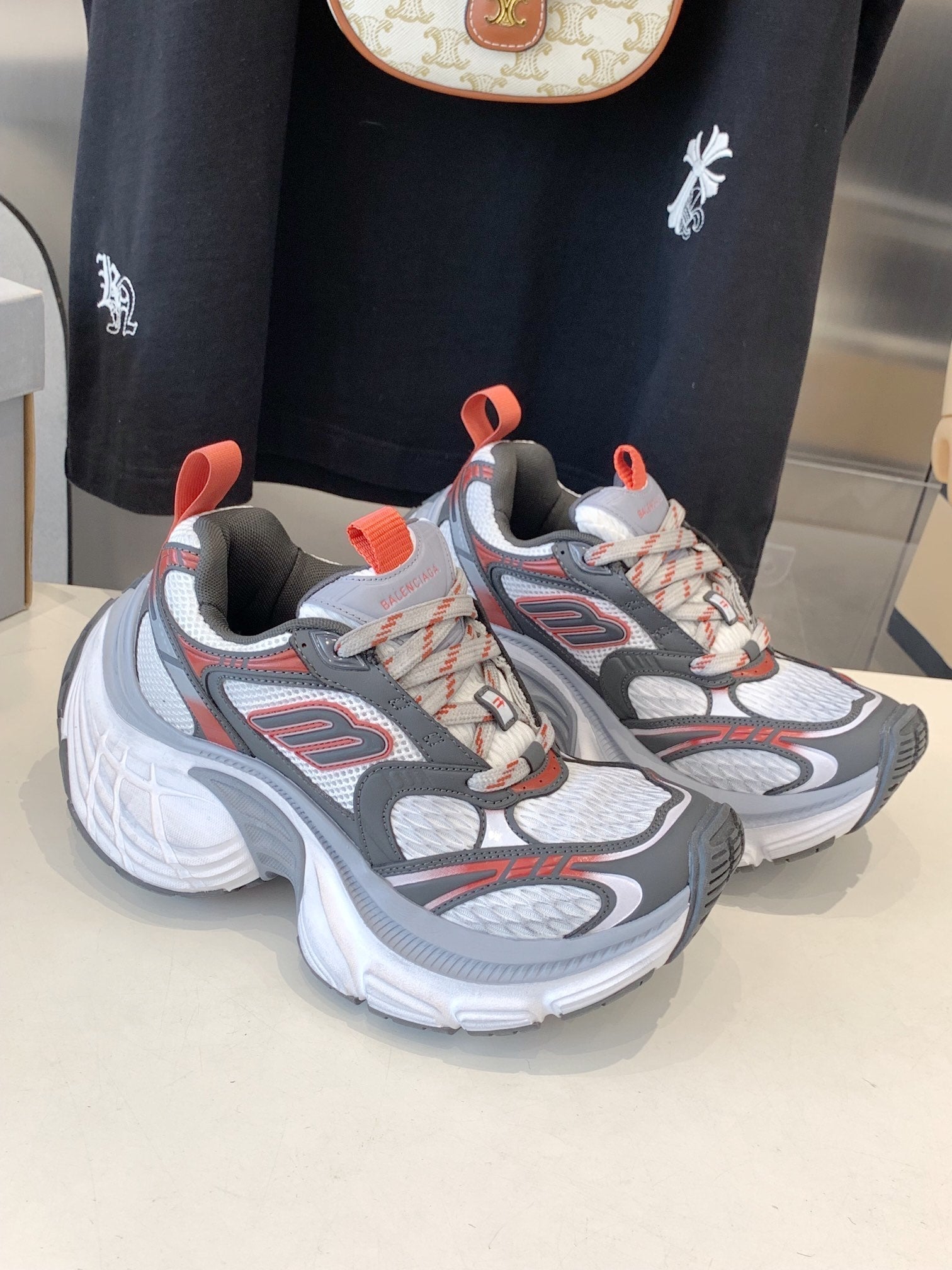 DAD SHOES IN GREY RED WHITE MESH AND CALFSKIN