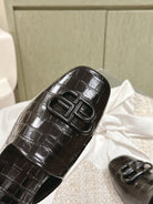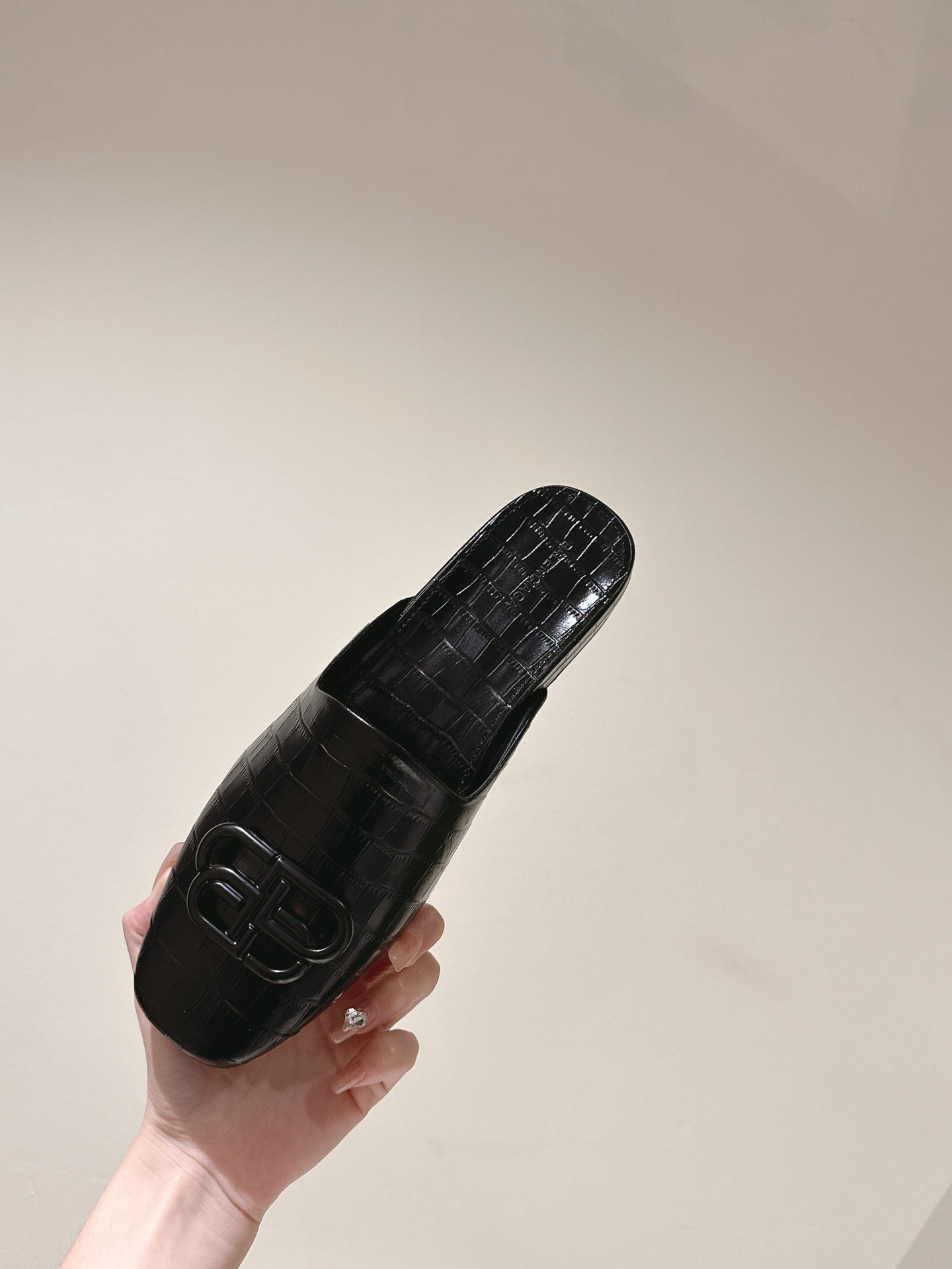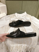 FLAT MULES IN BLACK CROCODILE EMBOSSED GLOSSY CALFSKIN