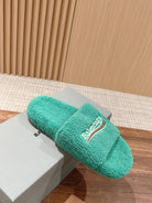 FURRY SLIDES IN TURQUOISE CURLY SHEARLING