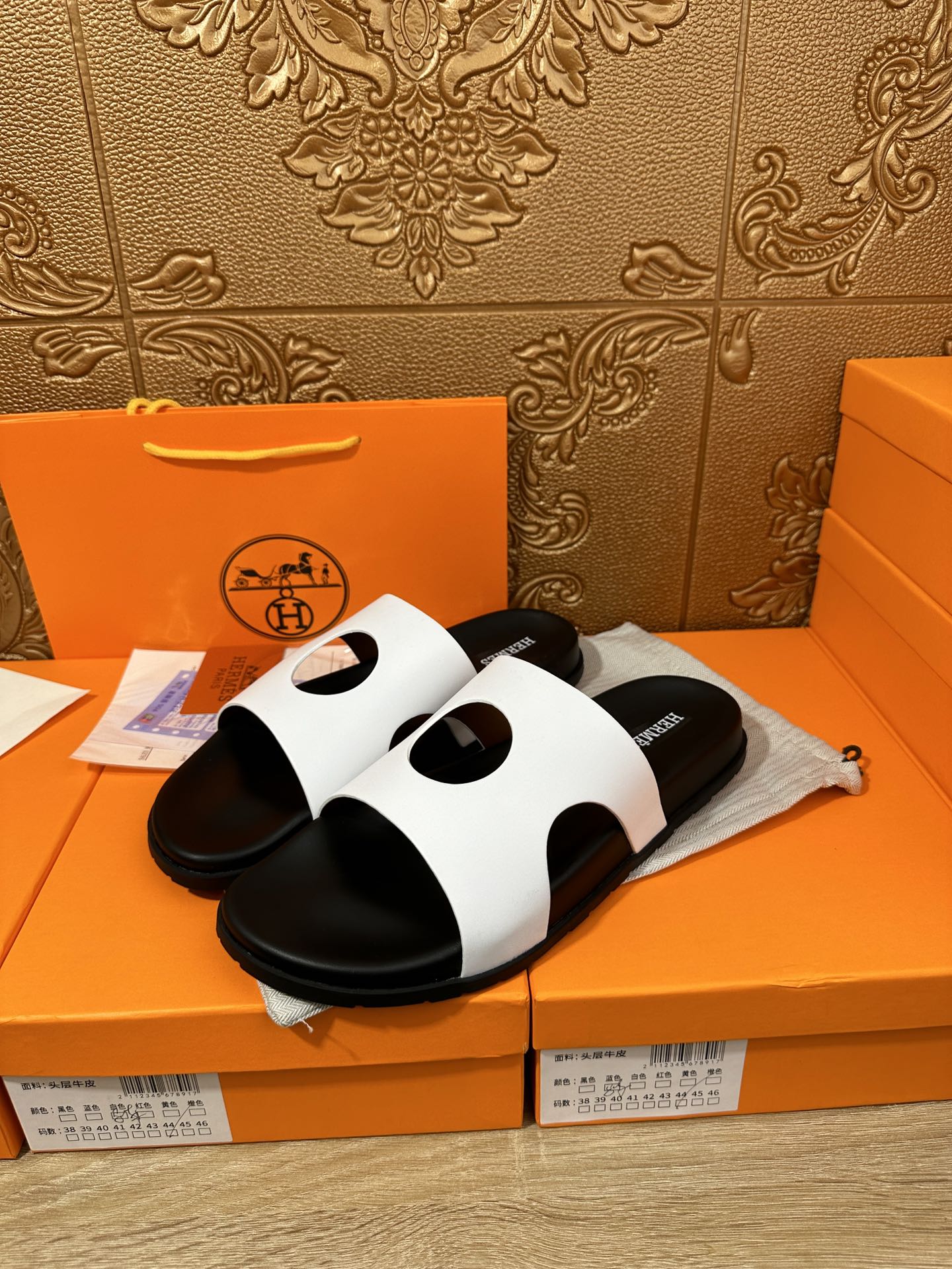 HM CIRCLE CUT SANDAL BLACK AND WHITE CALFSKIN