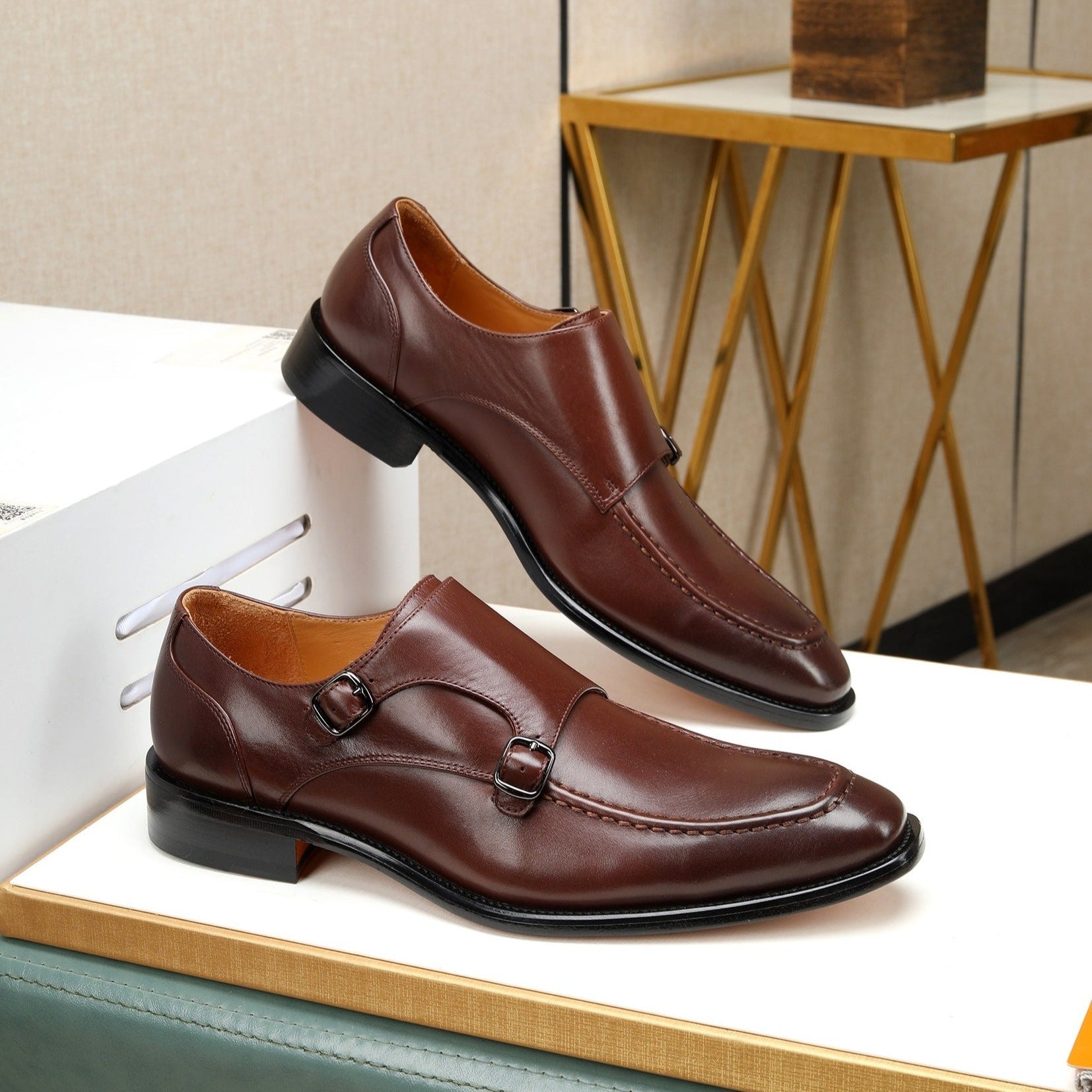 HM DOUBLE MONK STRAP RUSSET CALFSKIN