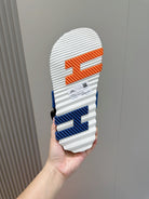 HM ELECTRIC SANDAL COBALT FABRIC AND CALFSKIN