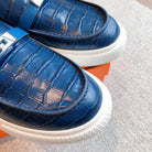 HM GAME SLIP-ON CROCODILE MOTIF SNEAKER NAVY CALFSKIN