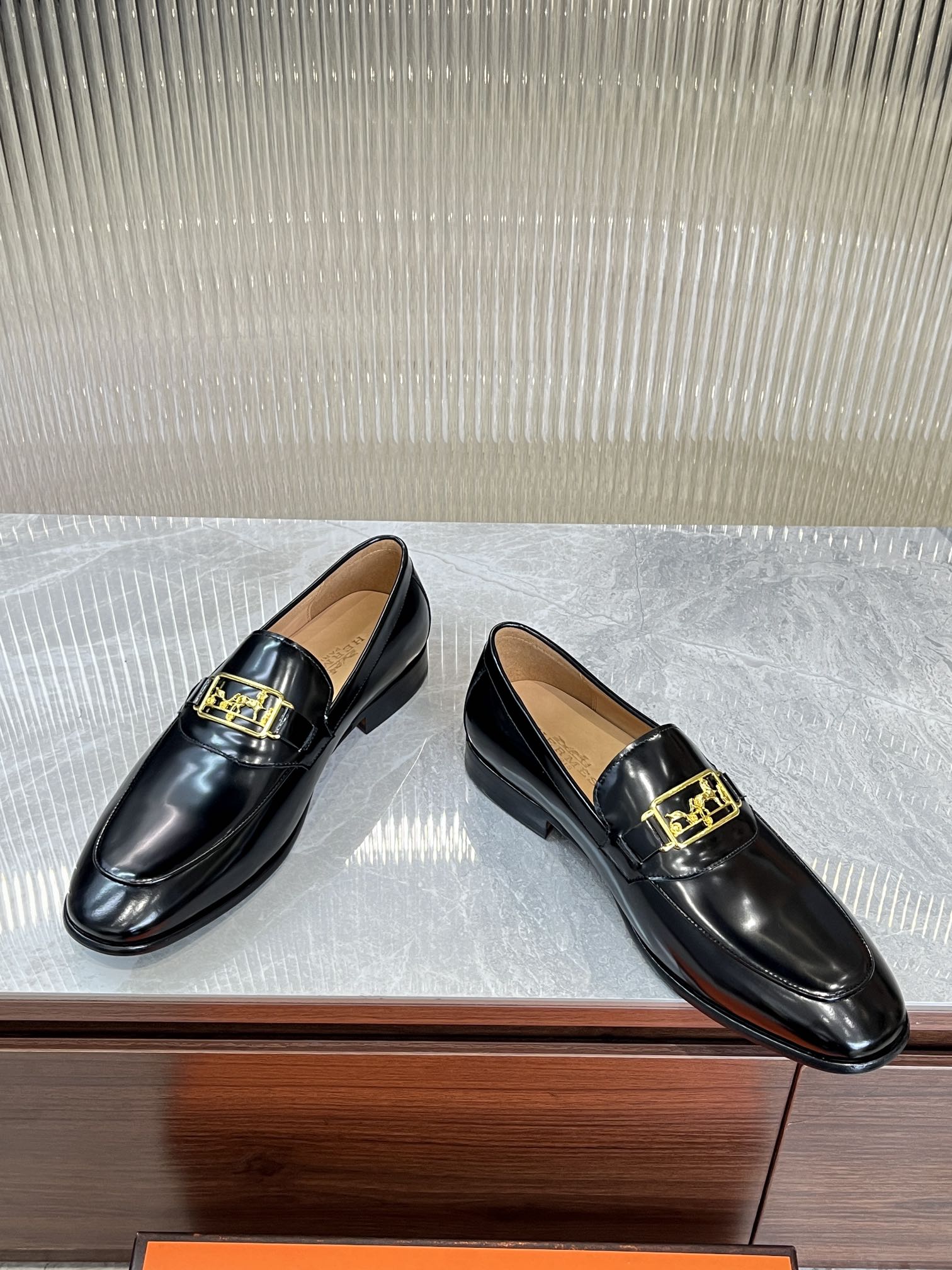 HM GOLD BUCKLE LOAFER BLACK CALFSKIN