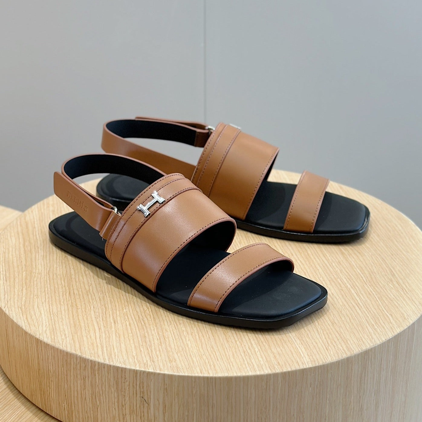 HM HENRIO FLAT SANDAL CARAMEL CALFSKIN