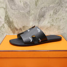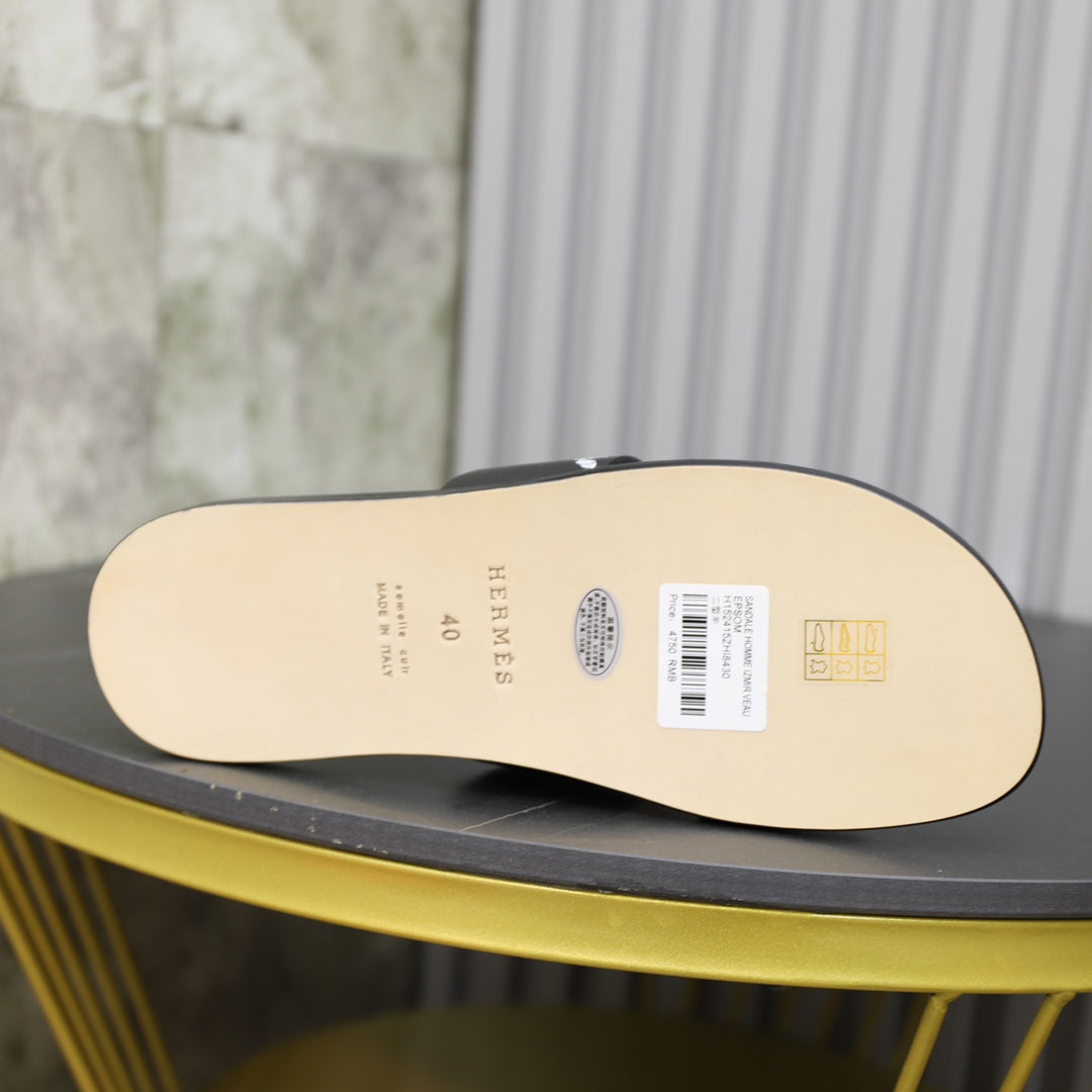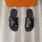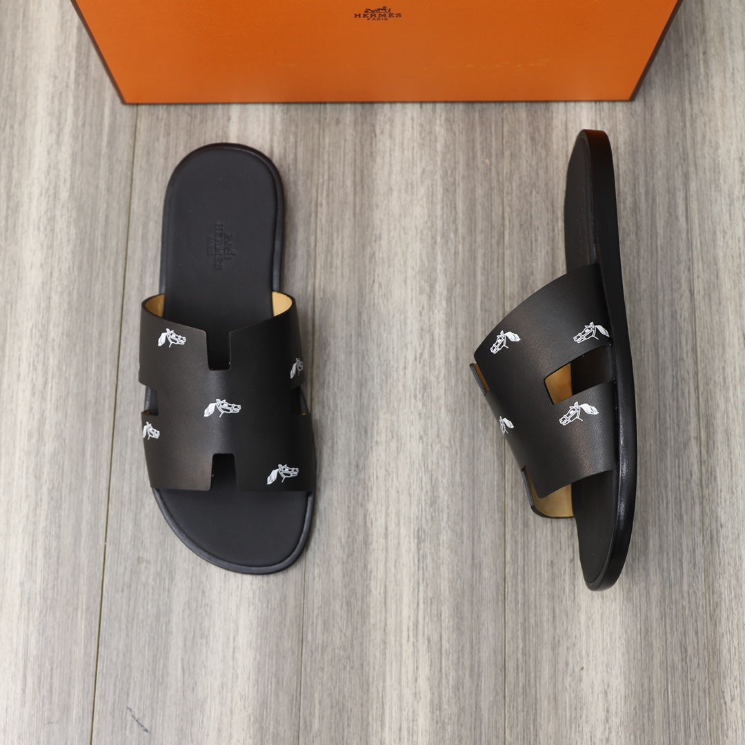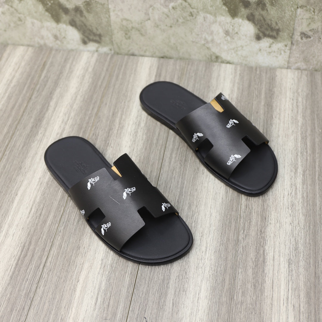 HM IZMIR SANDAL BLACK WITH WHITE ICON CALFSKIN