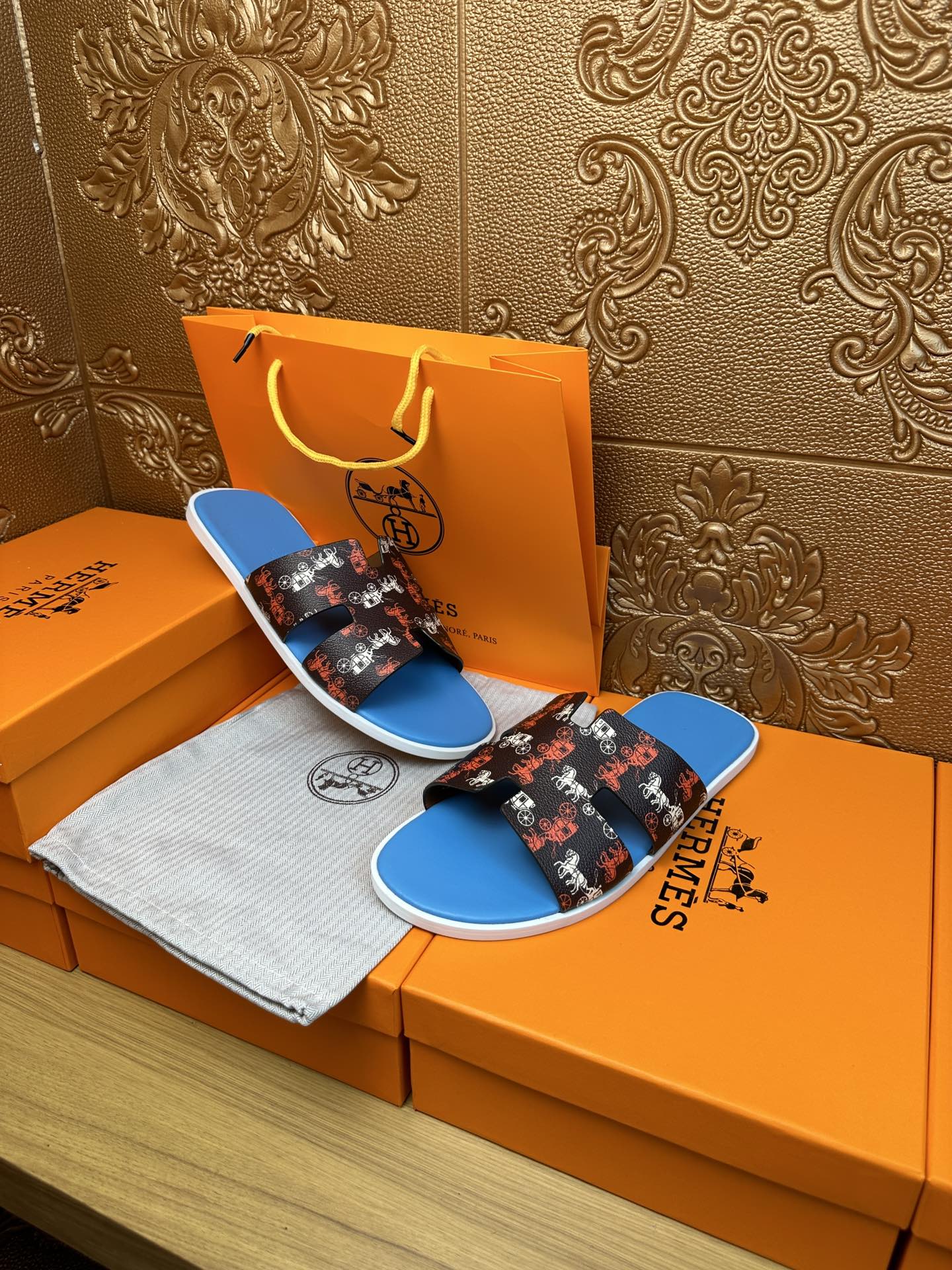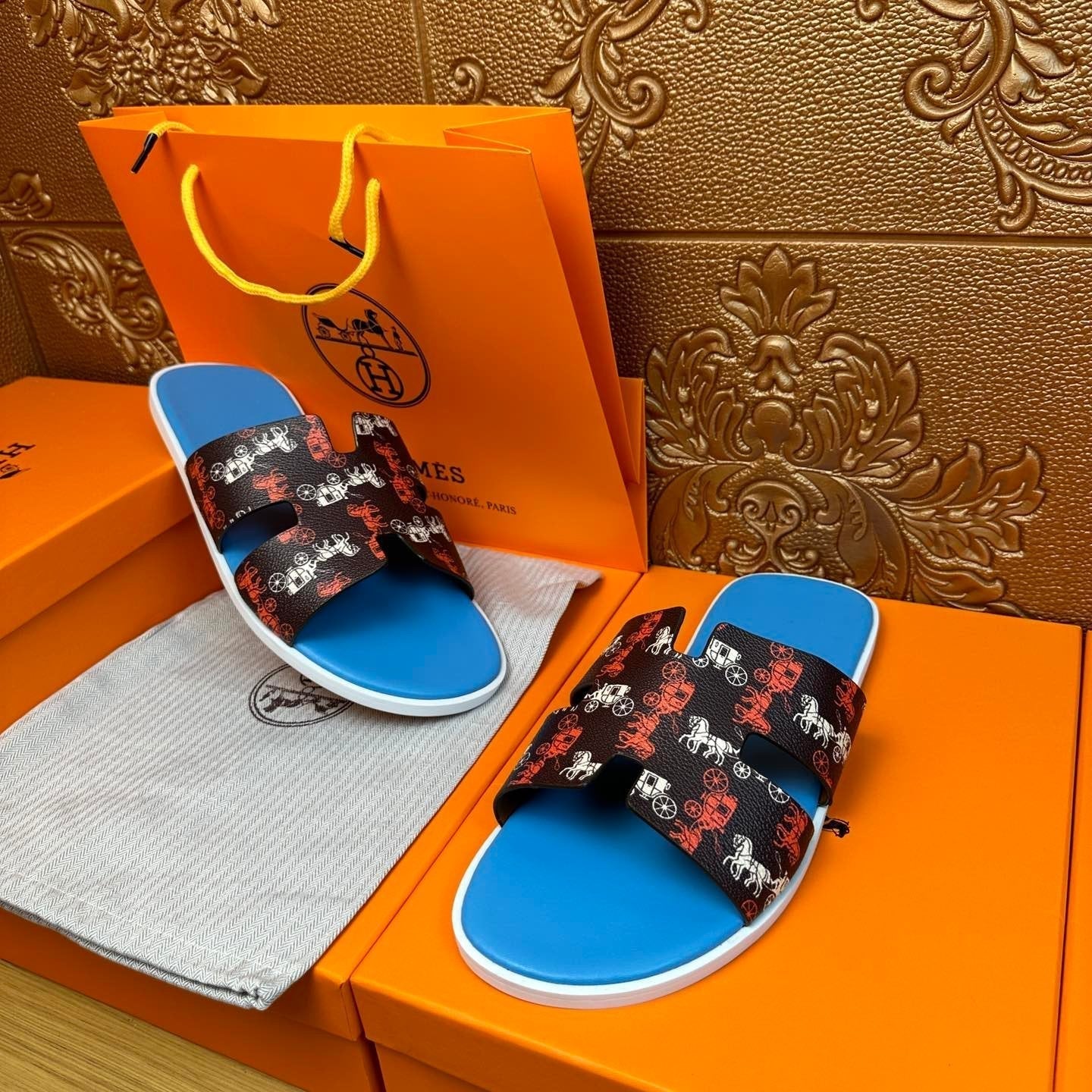 HM IZMIR SANDAL LAPIS AND BLACK CALFSKIN WITH HORSE MOTIF