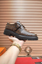 HM MONK STRAP CARAMEL WITH CROCODILE MOTIF CALFSKIN