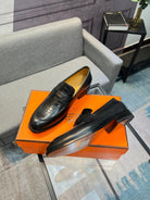 HM PARIS LOAFER BLACK CALFSKIN WITH CROCODILE MOTIF