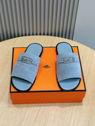 HM SILVER BUCKLE SLIPPERS CERULEAN SUEDE