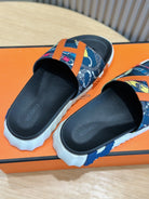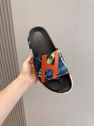 HM SLIPPERS BLACK AND NAVY CANVAS WITH MOTIF