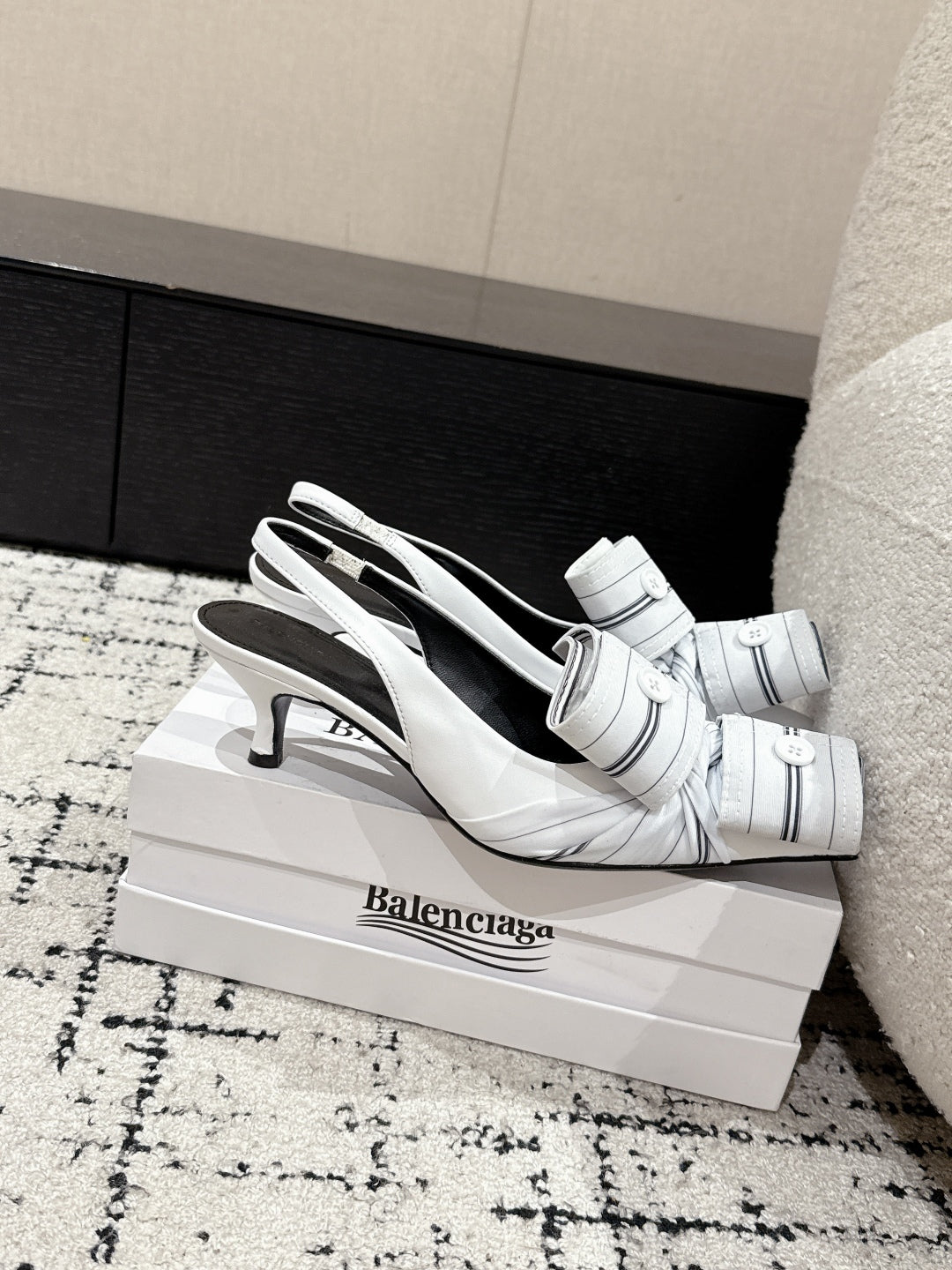 KNIFE CHEMISE 45MM SLINGBACK IN WHITE MIX BLACK COTTON AND CALFSKIN