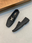 LV LOAFER IN BLACK WRINKLE CALFSKIN WITH SILVER LOGO