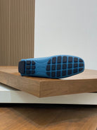 LV LOAFER IN ELECTRIC BLUE WRINKLE CALFSKIN WITH SILVER LOGO