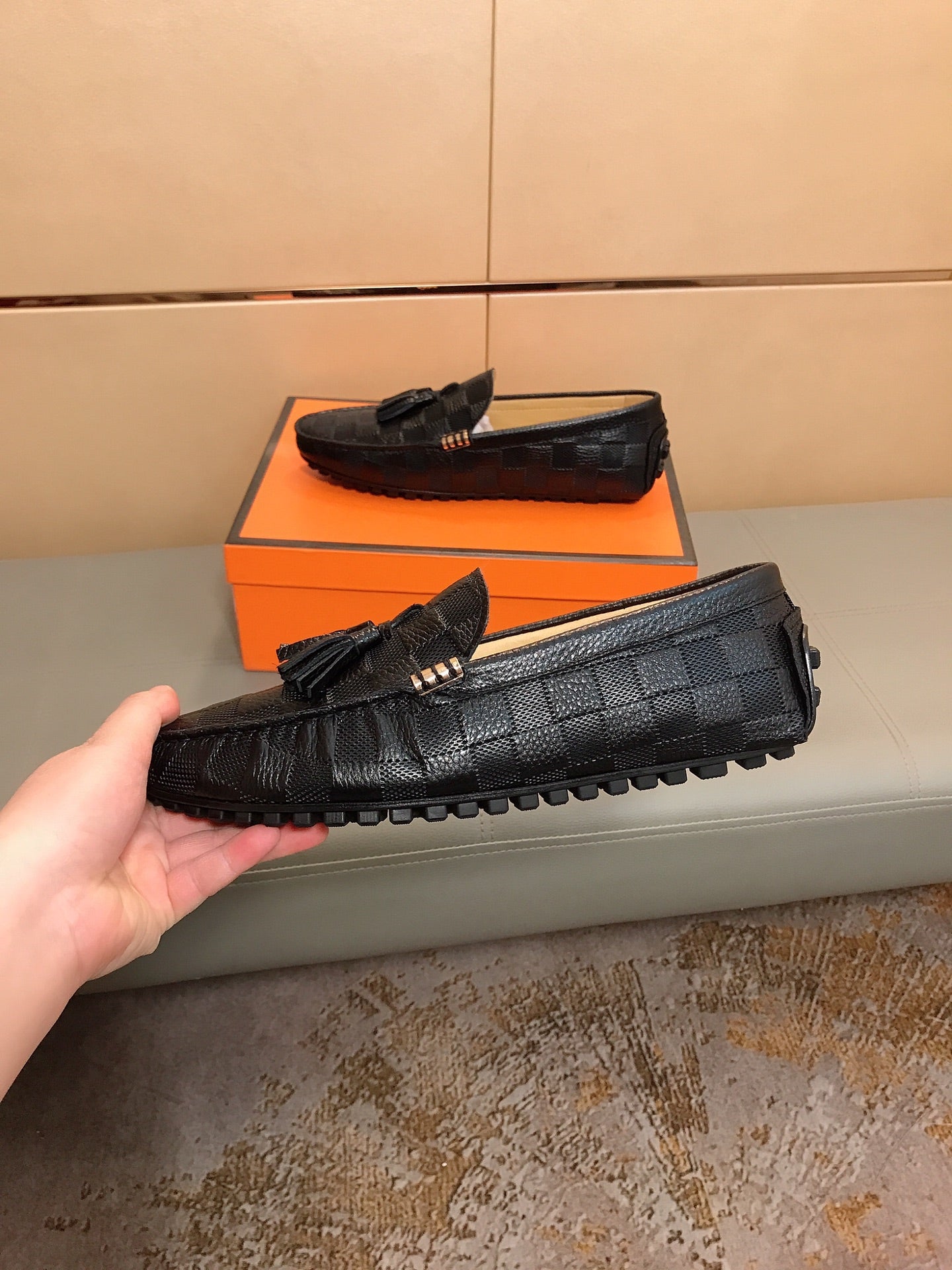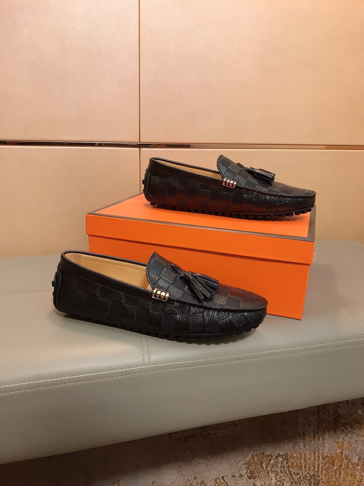 LV LOAFERS BLACK DAMIER CALFSKIN WITH TASSEL
