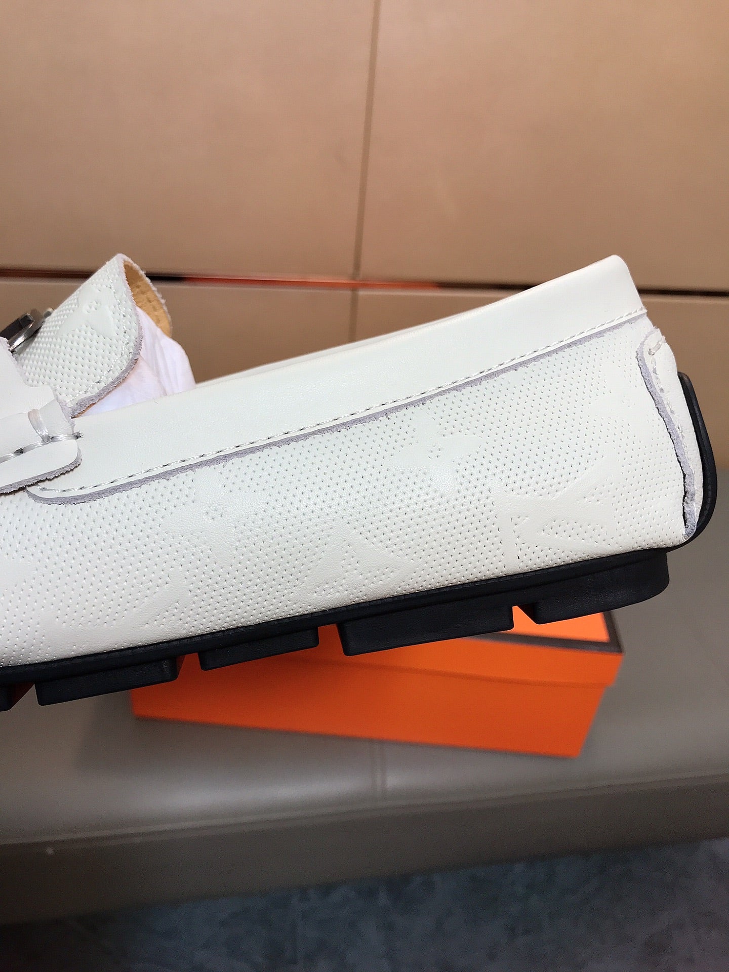 LV LOAFERS IN WHITE CALFSKIN WITH BRANDED EMBOSSING