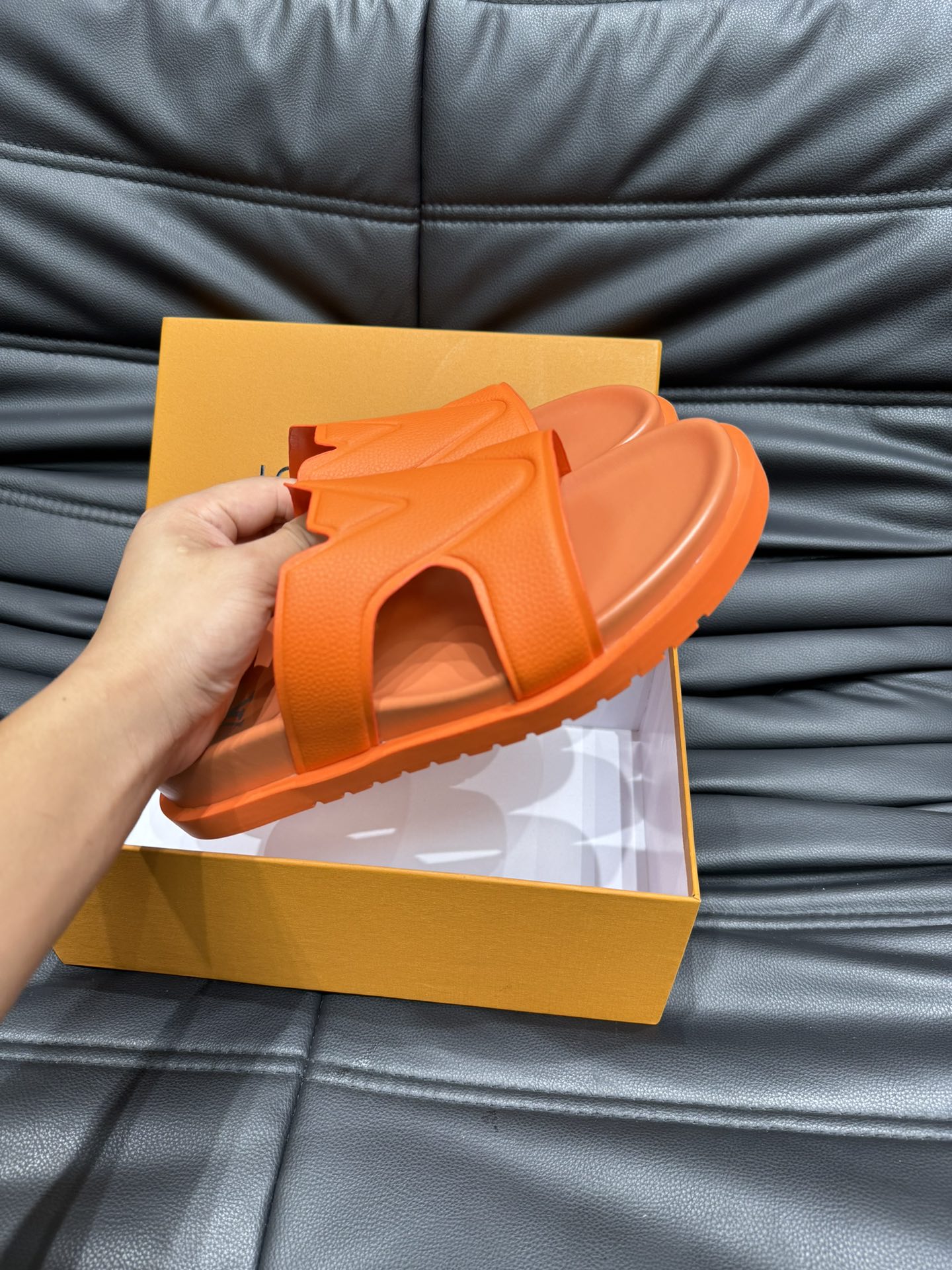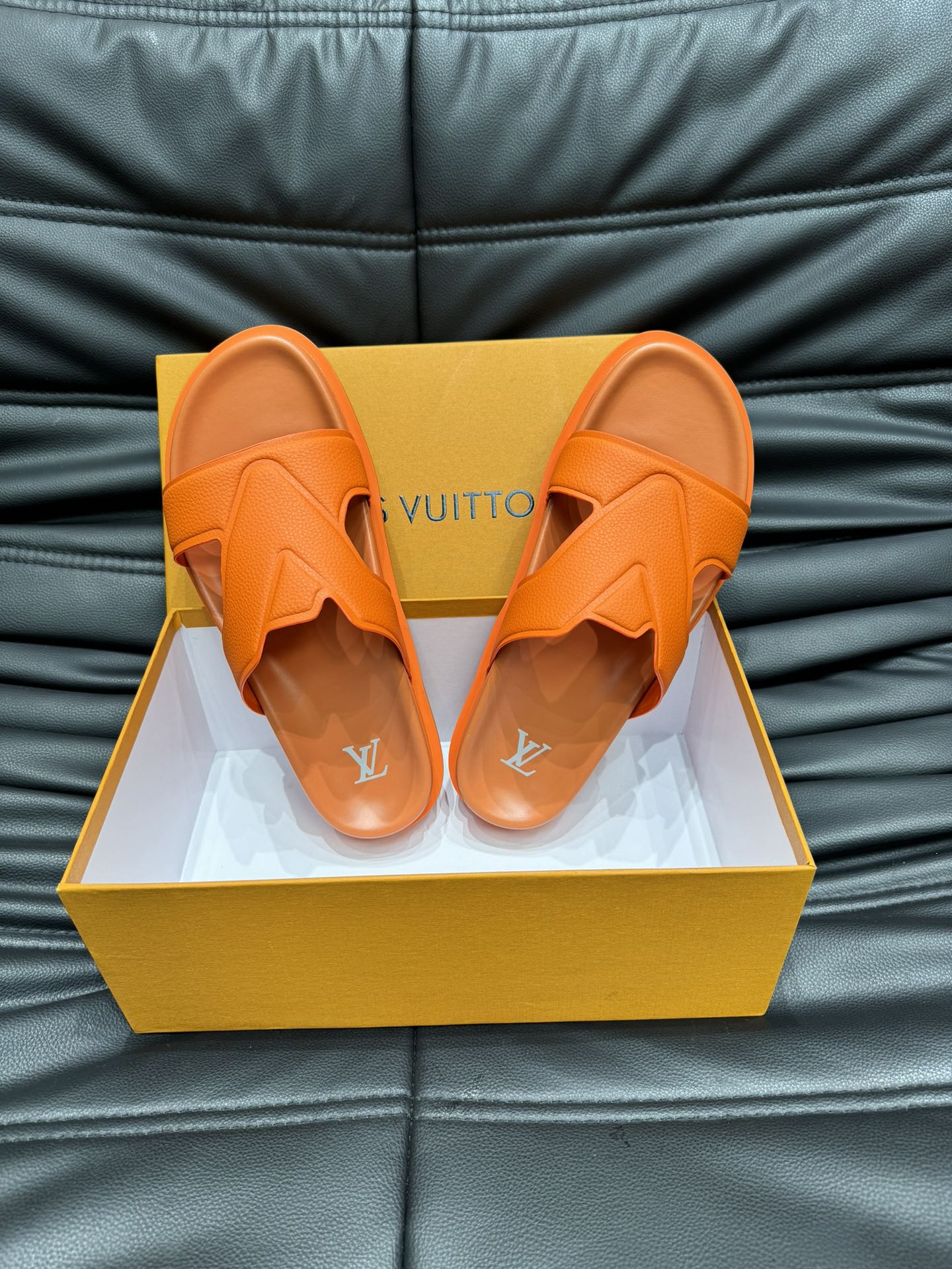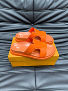 LV OASIS MULE IN CARROT ORANGE CALFSKIN